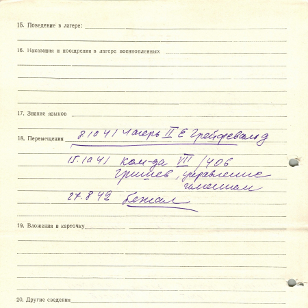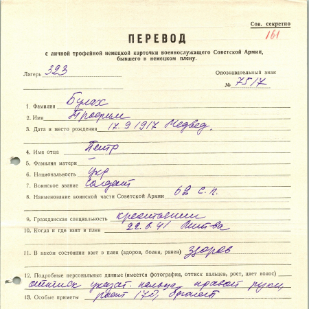 Булах Трофим Петрович, 17.09.1917 г .р., Медведин, Богуславский р-н, Киевская область. Рядовой, 62 стрелковый полк. Попал в плен 22.06.1941 г. в Литве. 27.08.1942 г. – бежал.
