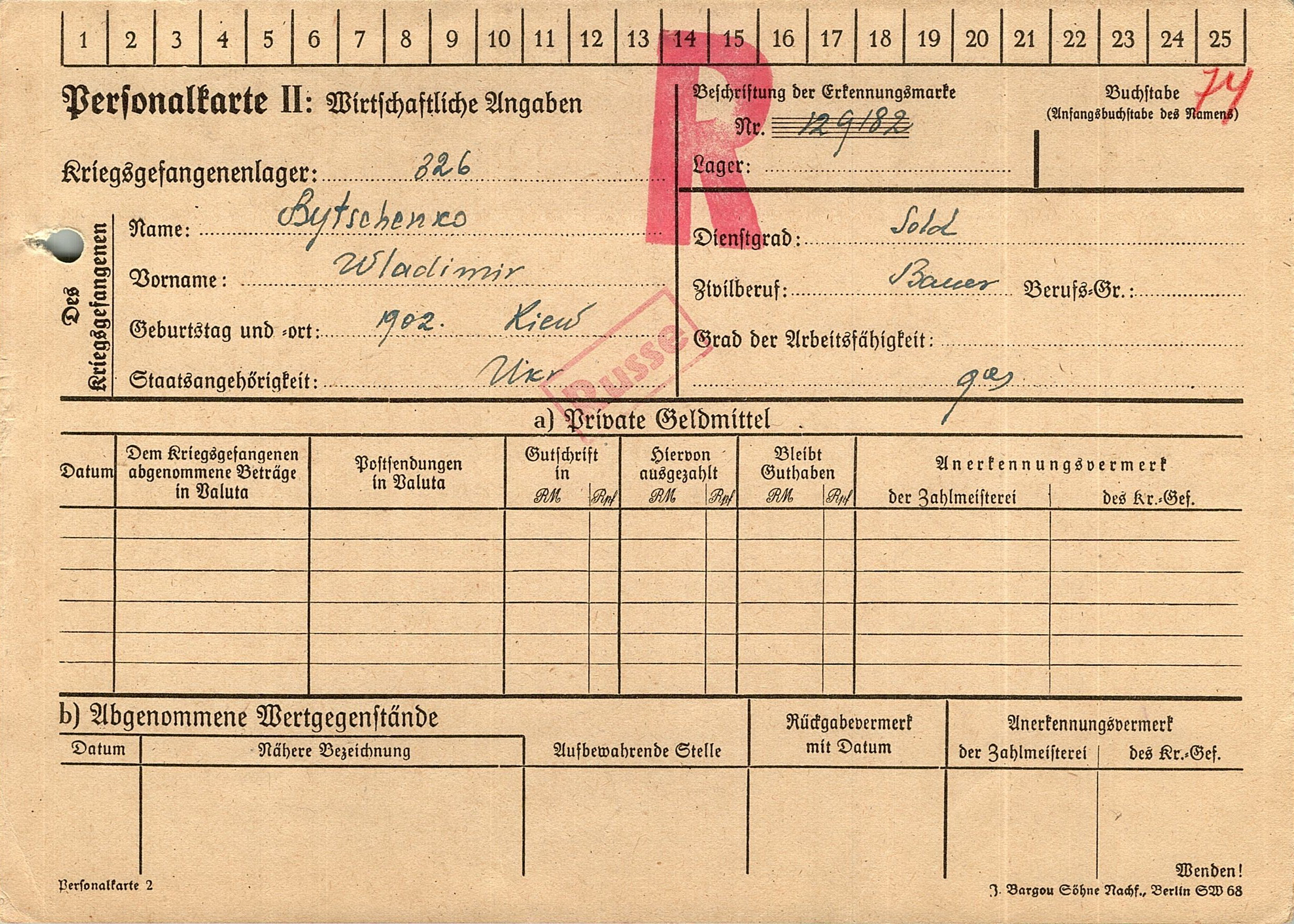 Военнопленные, трофейные карточки. Киевская обл.