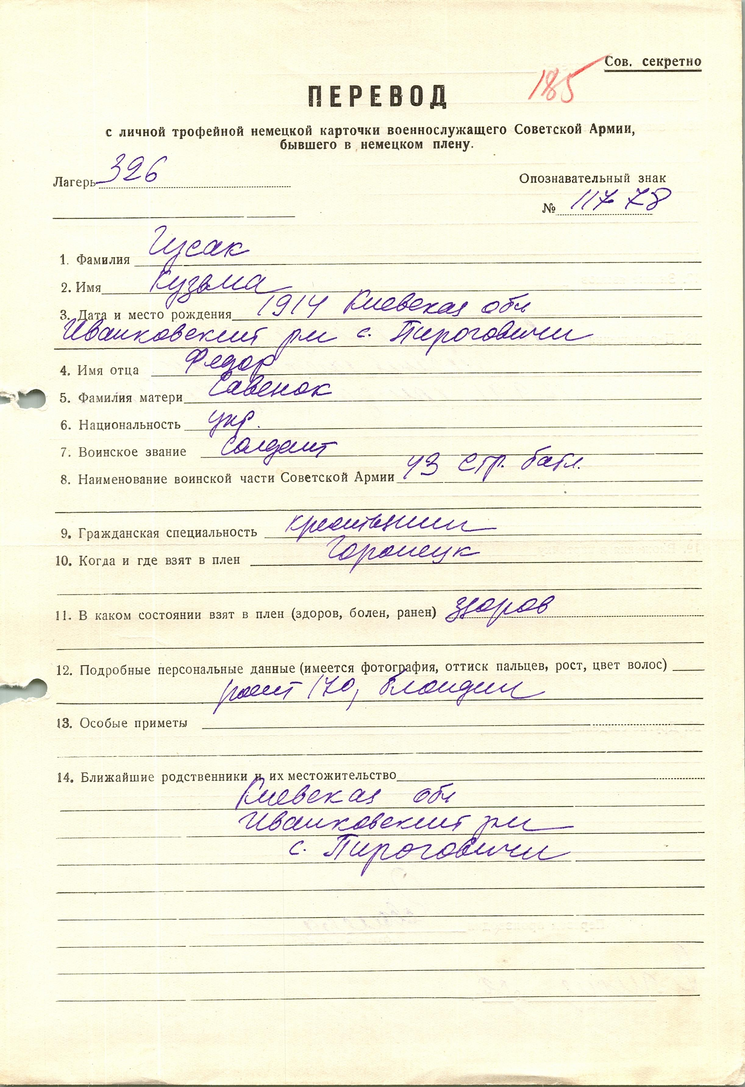 Военнопленные, трофейные карточки. Киевская обл.