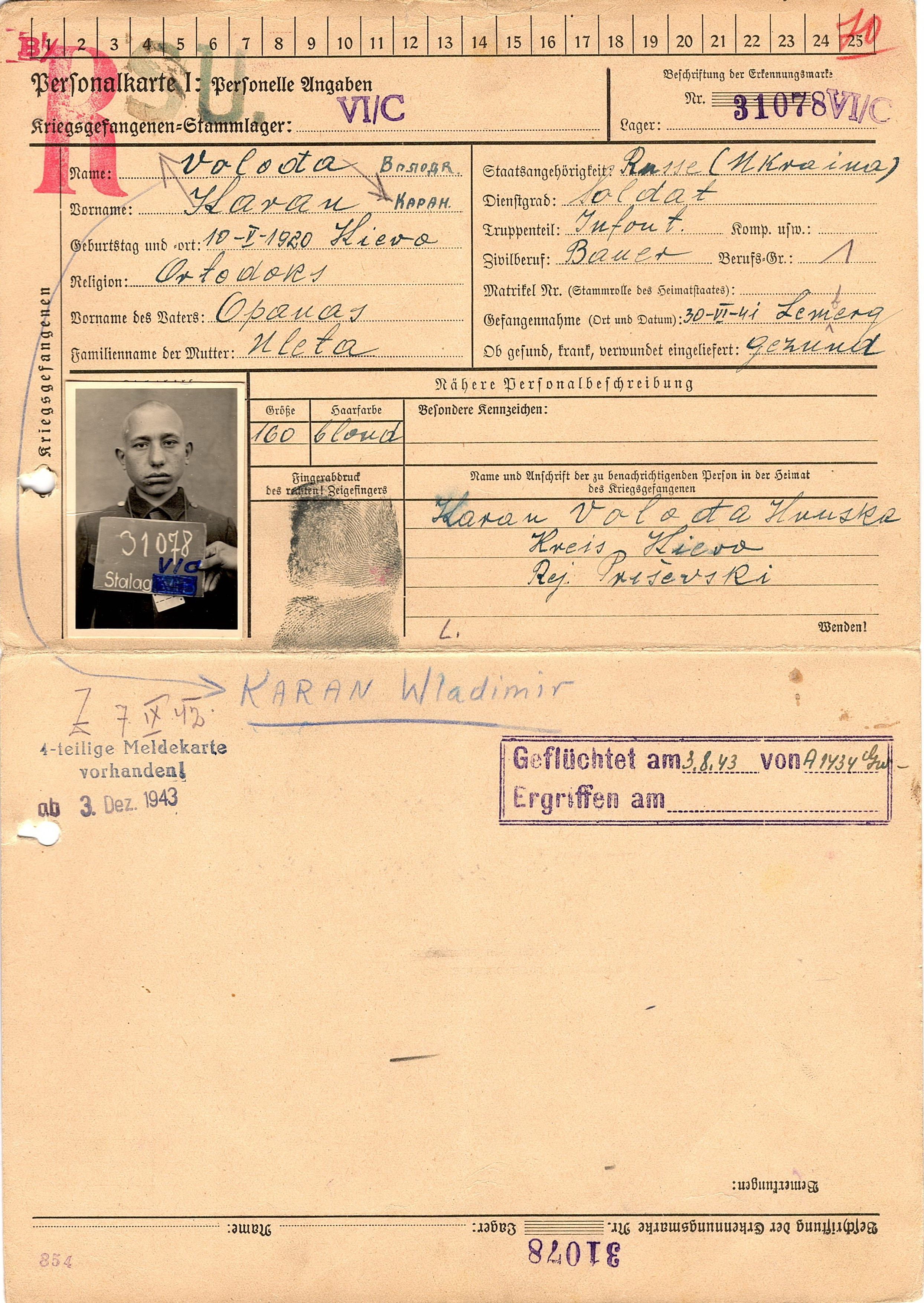 Военнопленные, трофейные карточки. Киевская обл.