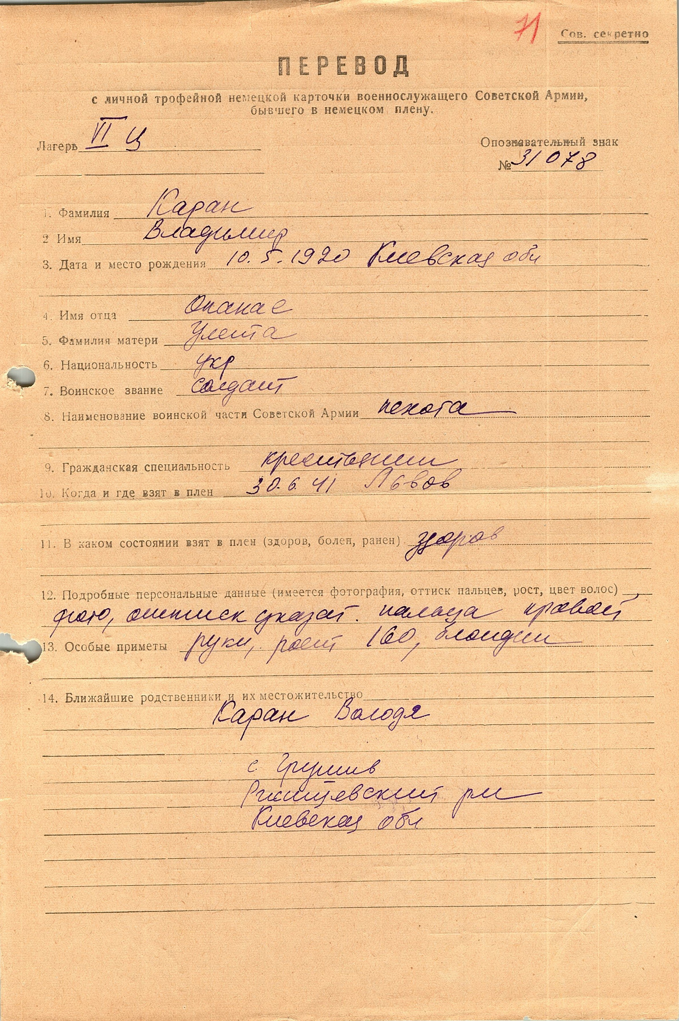 Военнопленные, трофейные карточки. Киевская обл.