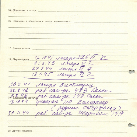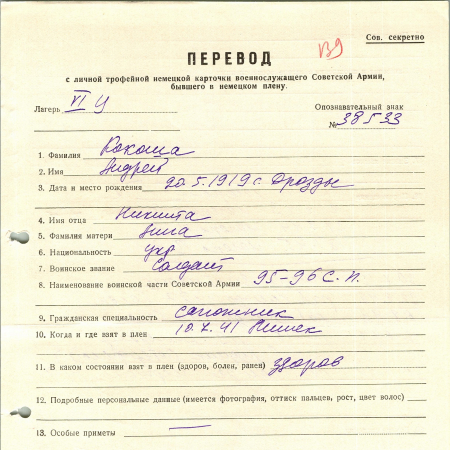 Кокоша Андрей Никитович, 20.05.1919 г. р., с Дрозды, Киевская область. Рядовой 95-96 стрелковый полк. Попал в плен 10.07.1941 г. в Минске. 30.11.1944 г. – рабочая команда Ивершейм, 149.