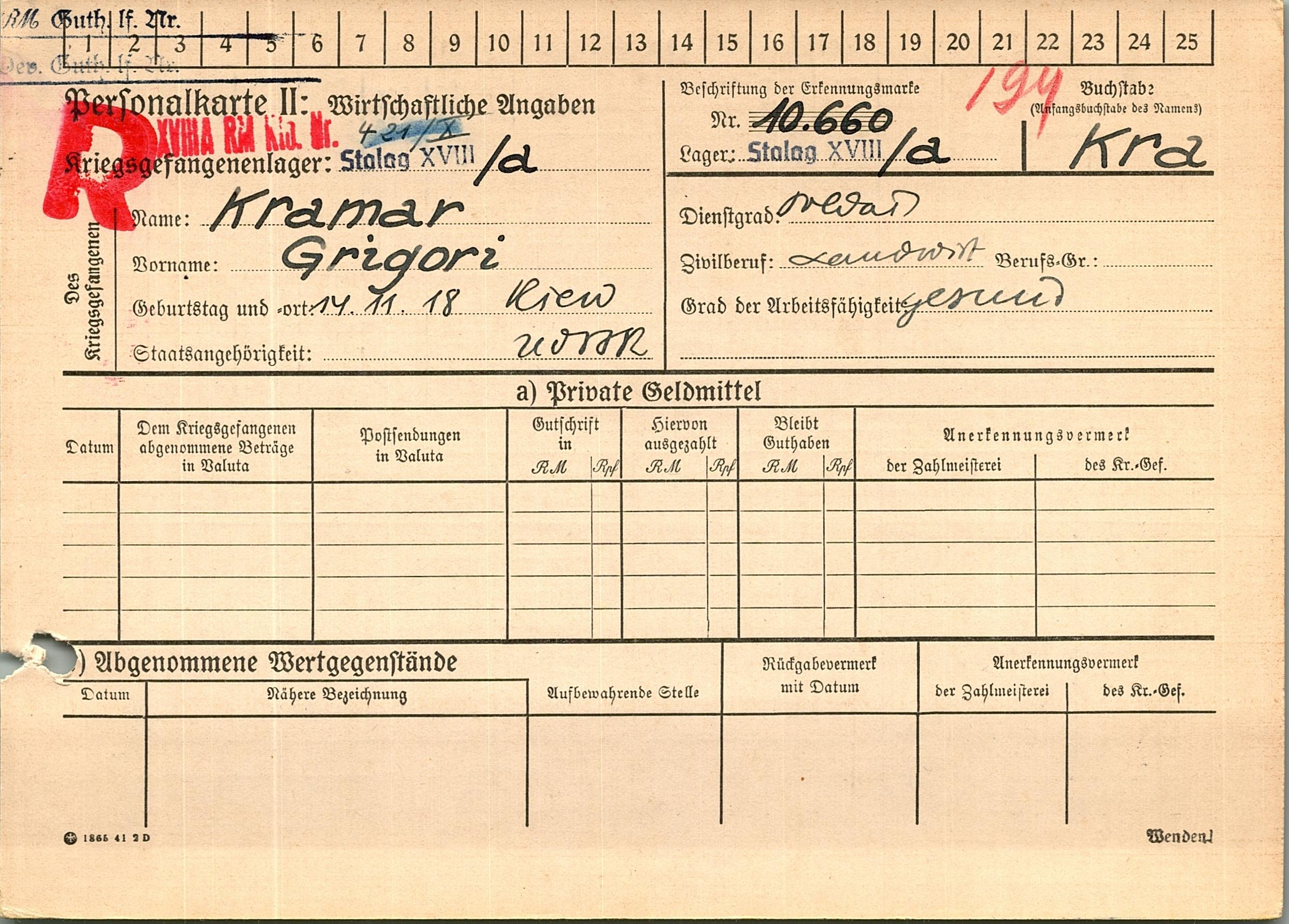 Военнопленные, трофейные карточки. Киевская обл.