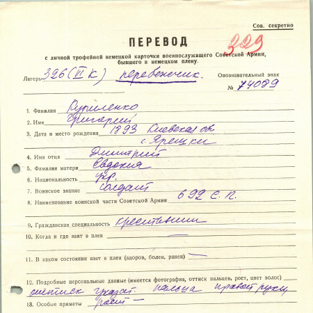 Куриленко Григорий Дмитриевич, 1893 г. р., с. Ярешки, Киевская область. Рядовой, 692 стрелковый полк. 15.12.1944 г. – рабочая команда Рейдит 651.