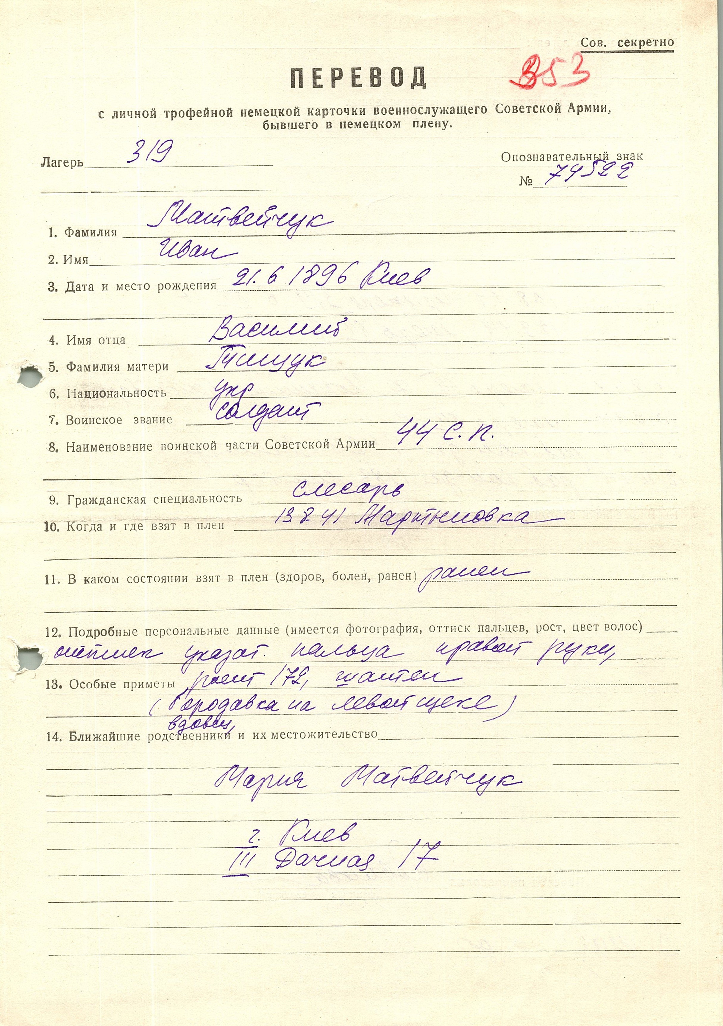 Военнопленные, трофейные карточки. Киевская обл.