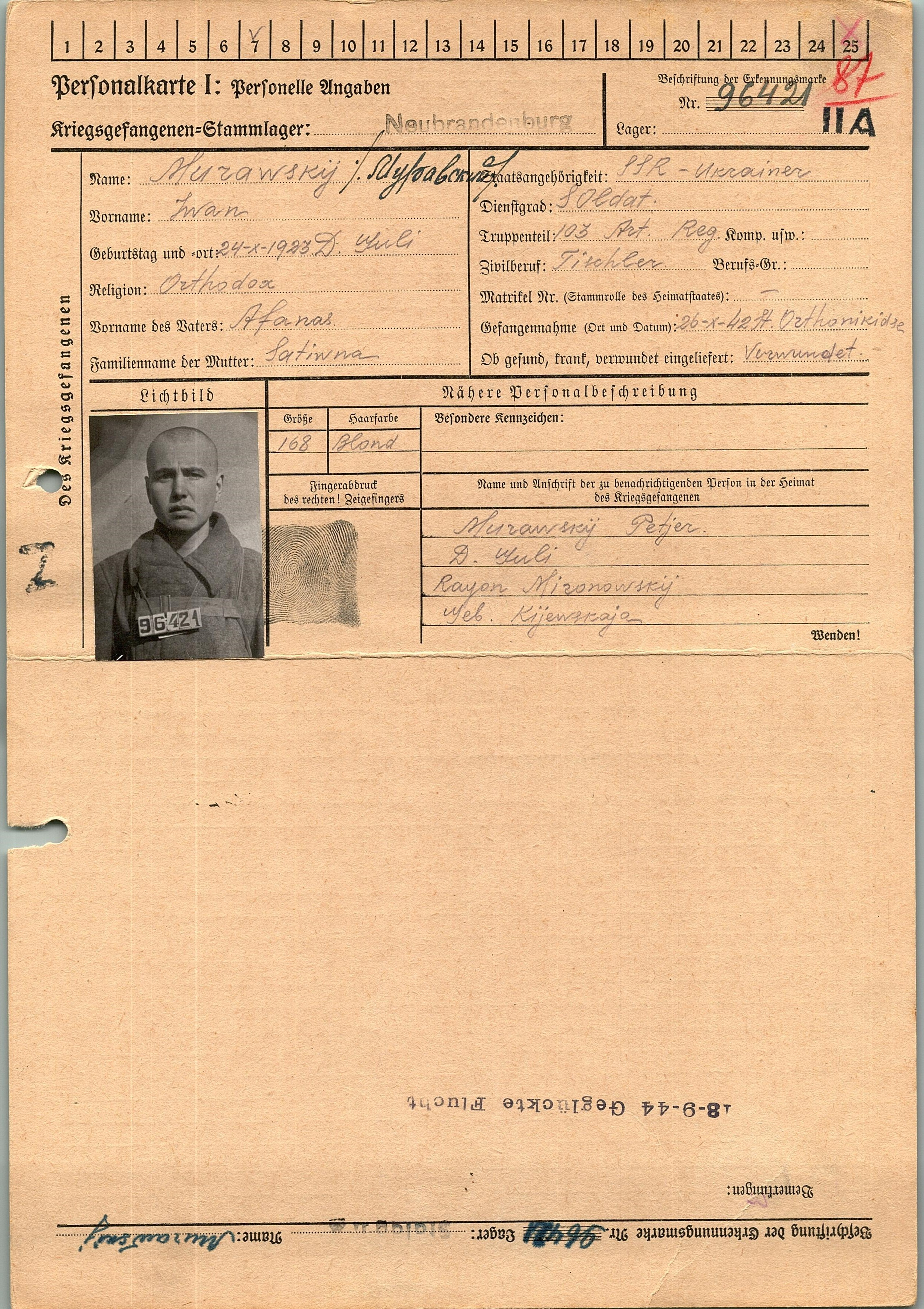 Военнопленные, трофейные карточки. Киевская обл.
