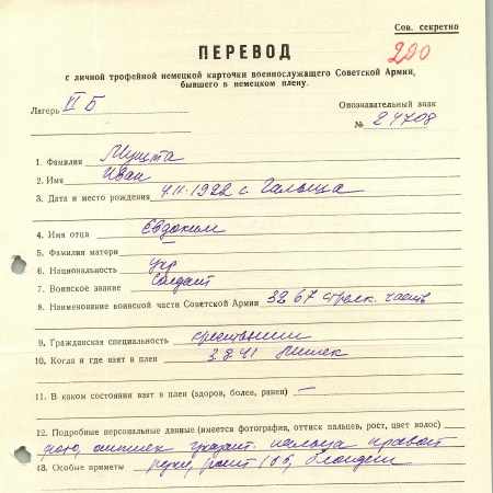 Мушта Иван Евдокимовчи, 04.11.1922 г. р., с. Гальша. Рядовой, 3267 стрелковая часть. Попал в плен 03.08.1941 г. в Мишеке. 10.09.1941 г. – бежал из плена.