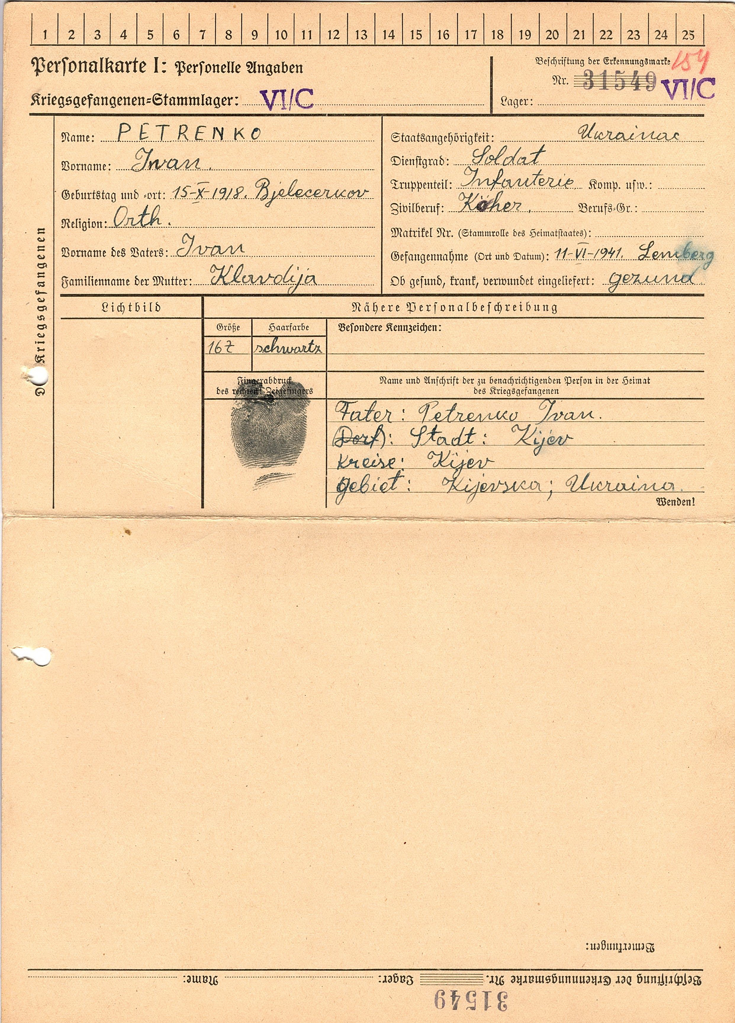 Военнопленные, трофейные карточки. Киевская обл.