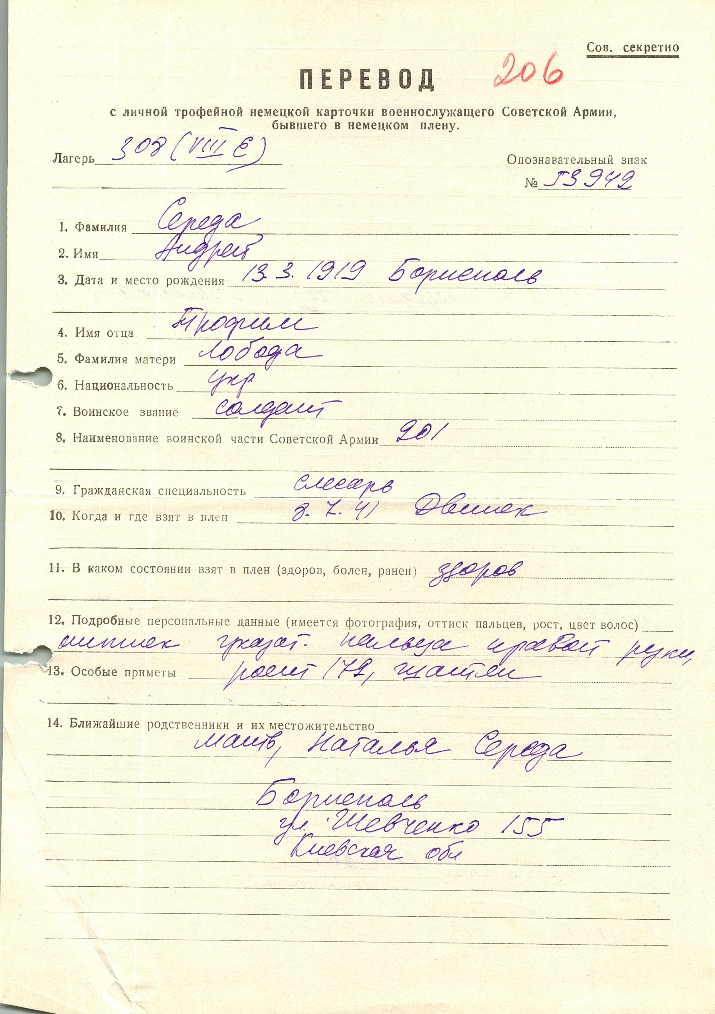 Военнопленные, трофейные карточки. Киевская обл.