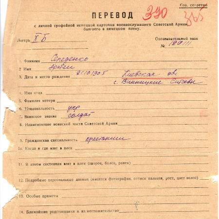 Середенко Артем, 21.10.1905 г. р., с. Винницкие Ставы, Киевская область. Рядовой. Попал в плен в лагерь Х В.