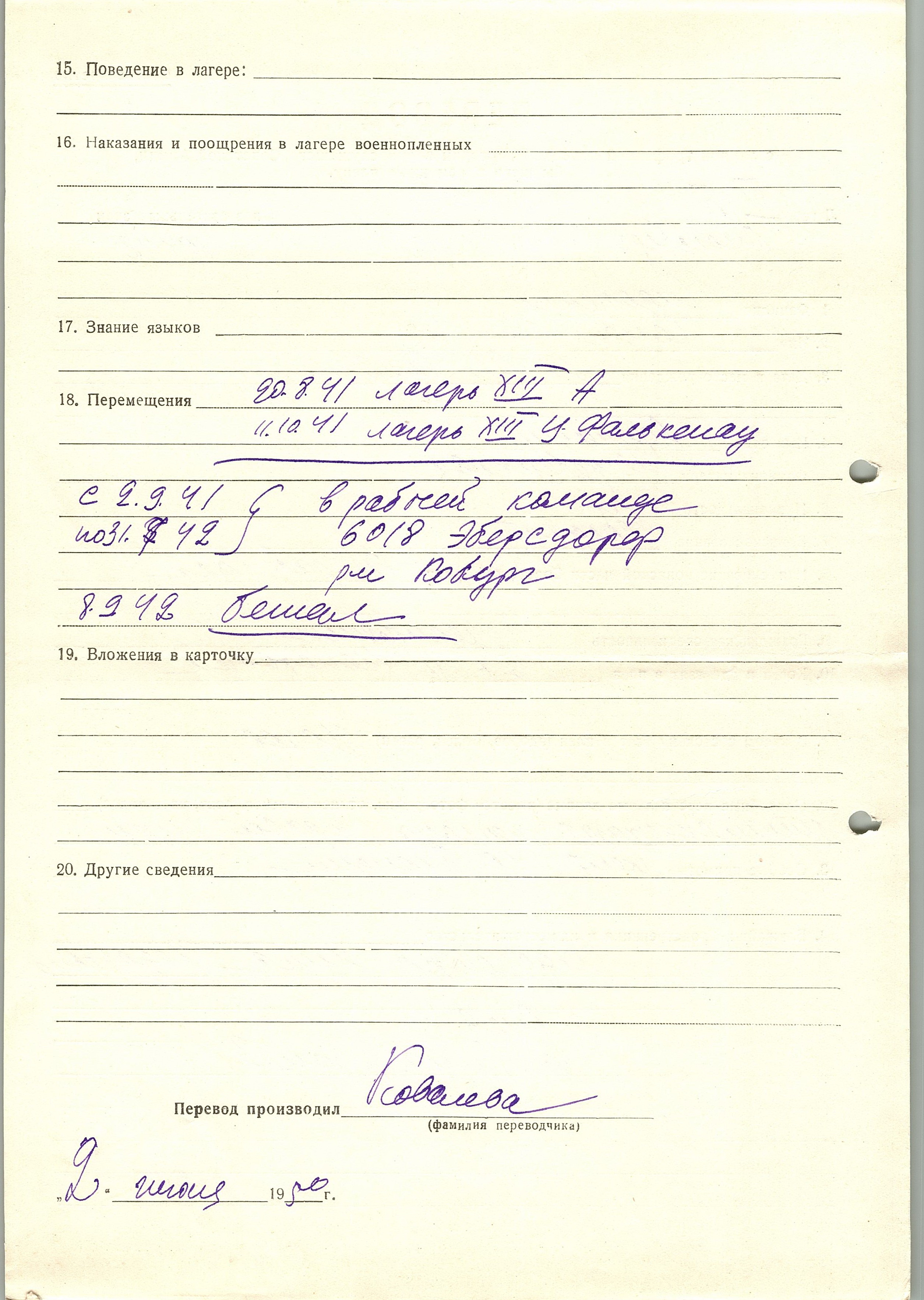 Военнопленные, трофейные карточки. Киевская обл.