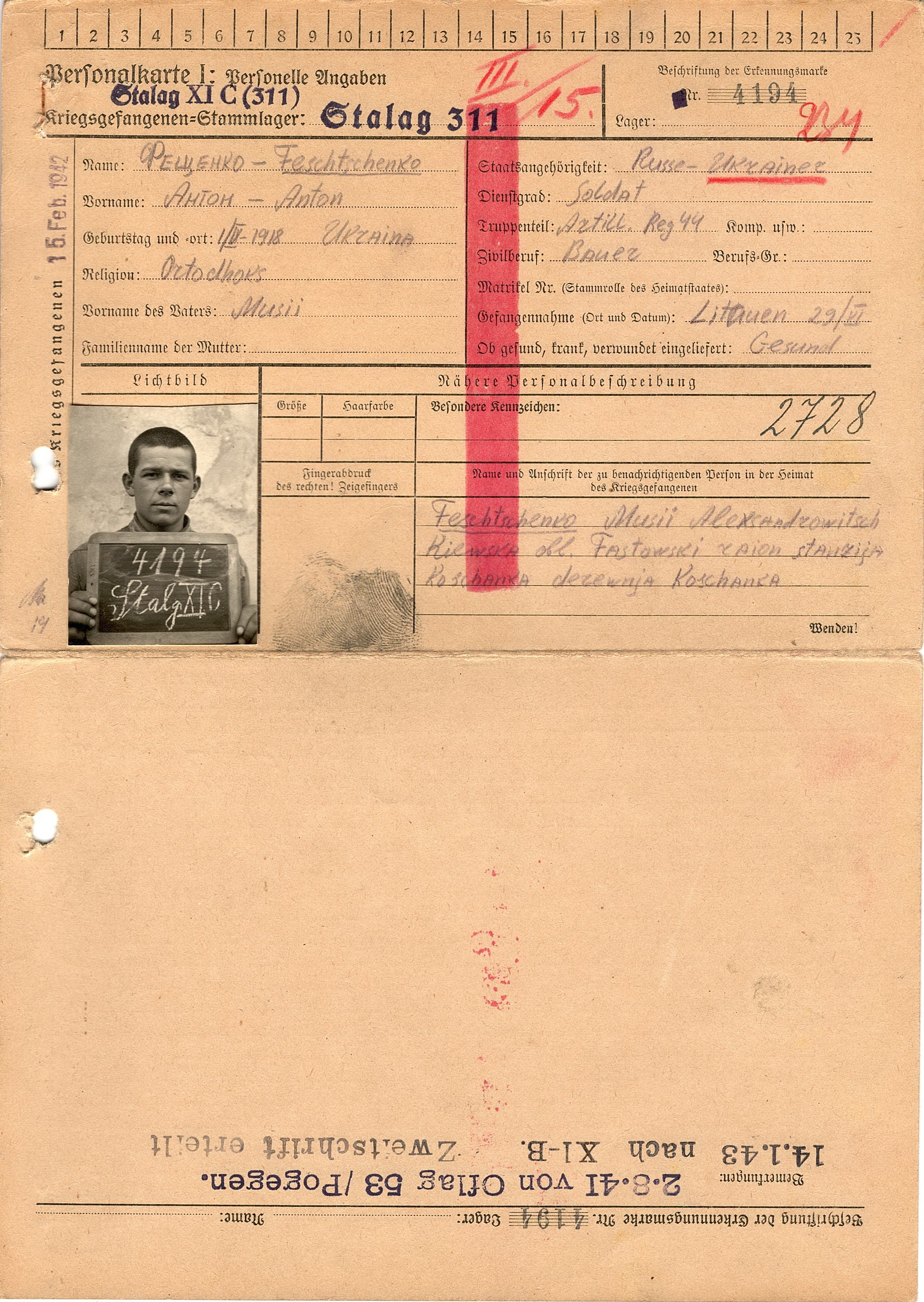 Военнопленные, трофейные карточки. Киевская обл.