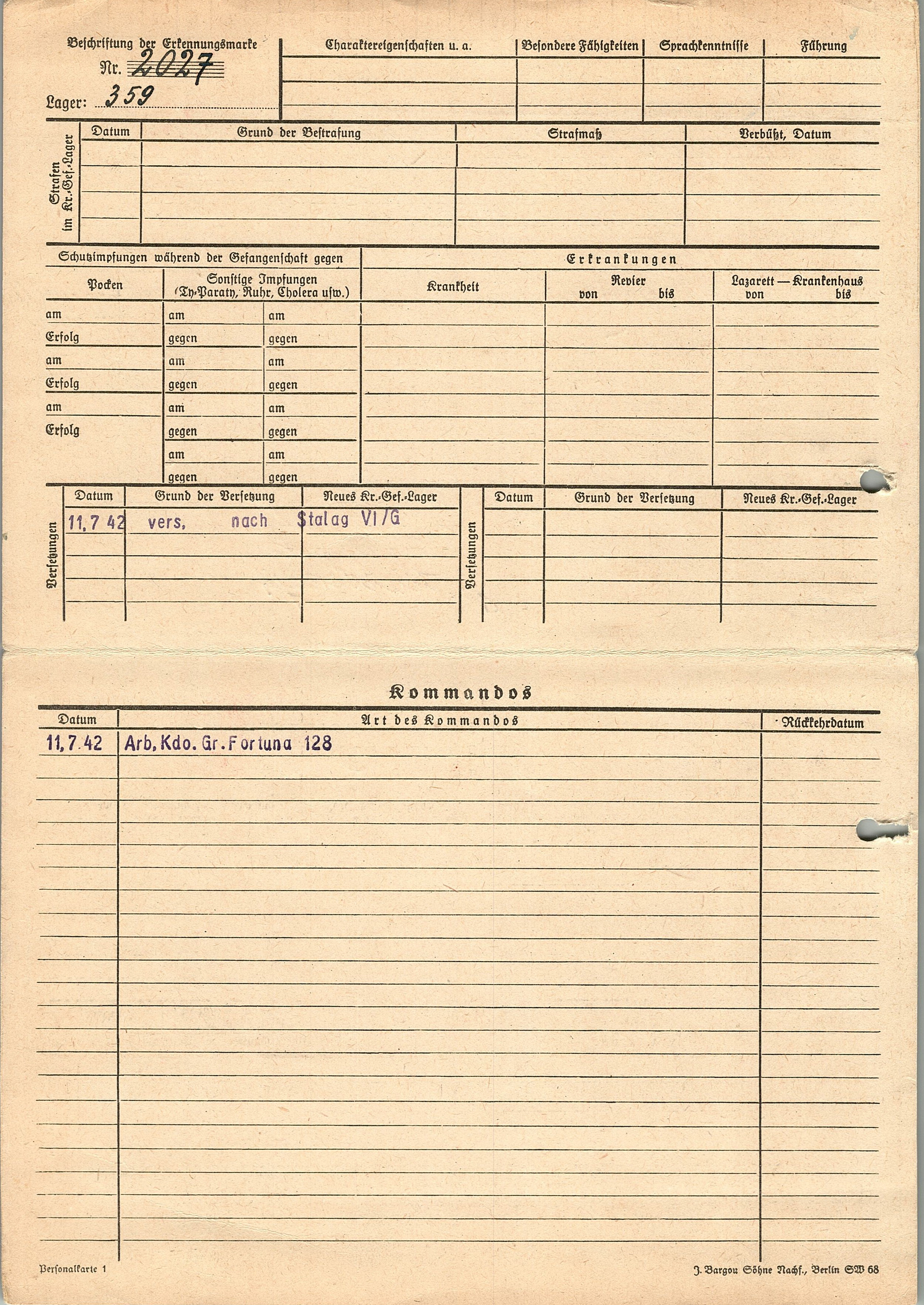 Военнопленные, трофейные карточки. Киевская обл.