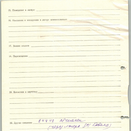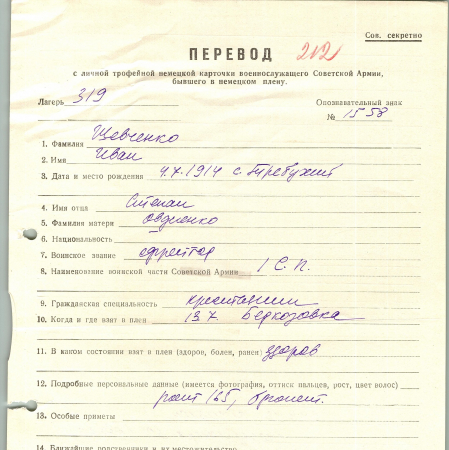 Шевченко Иван Степанович, 04.07.1914 г. р., с. Требухий. Ефрейтор, 1 стрелковый полк. Попал в плен 13 июля в Беркозовке. 24.04.1942 г. – отчислен (через лагерь 301 Ковель).