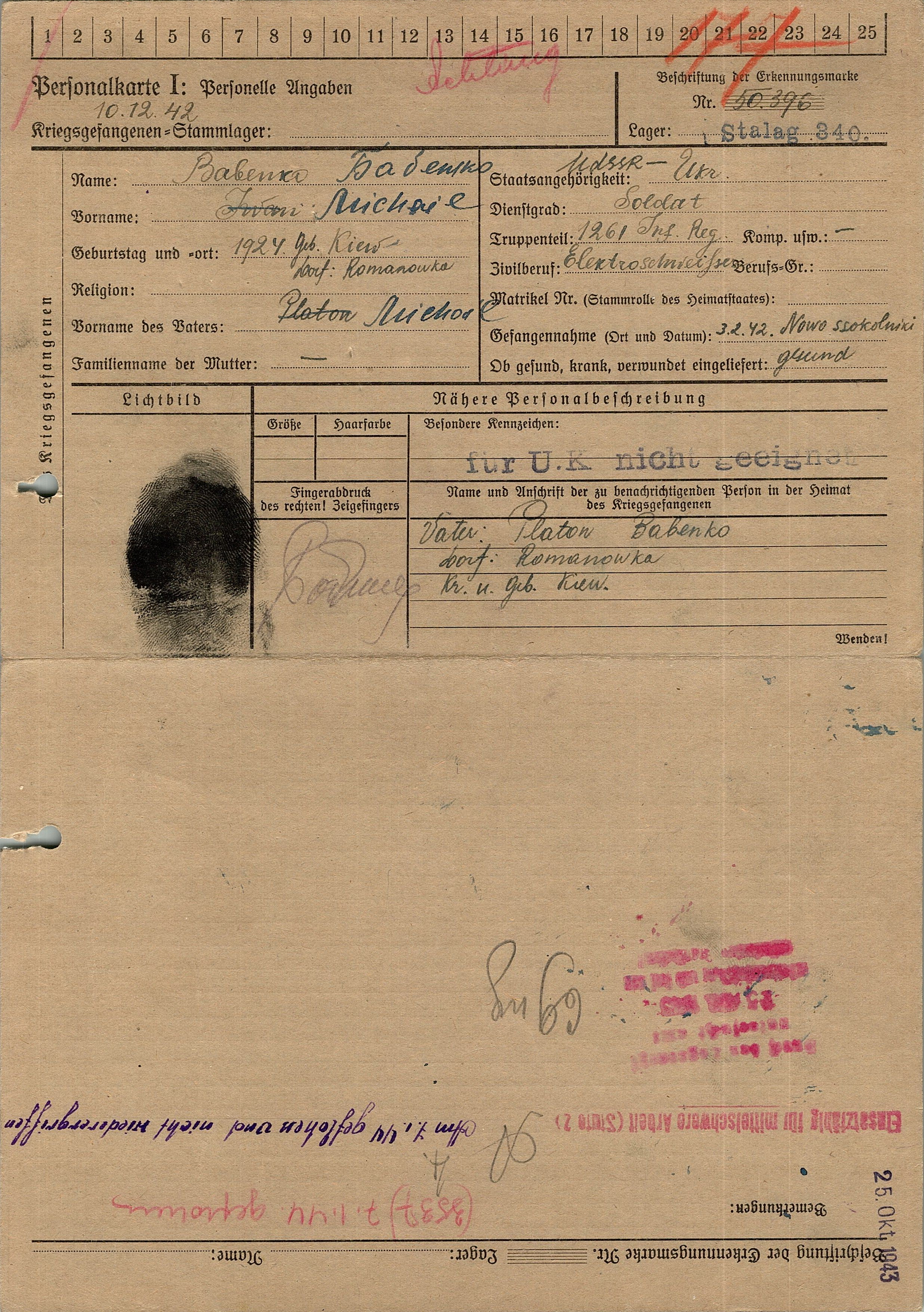 Военнопленные, трофейные карточки. Киевская обл.
