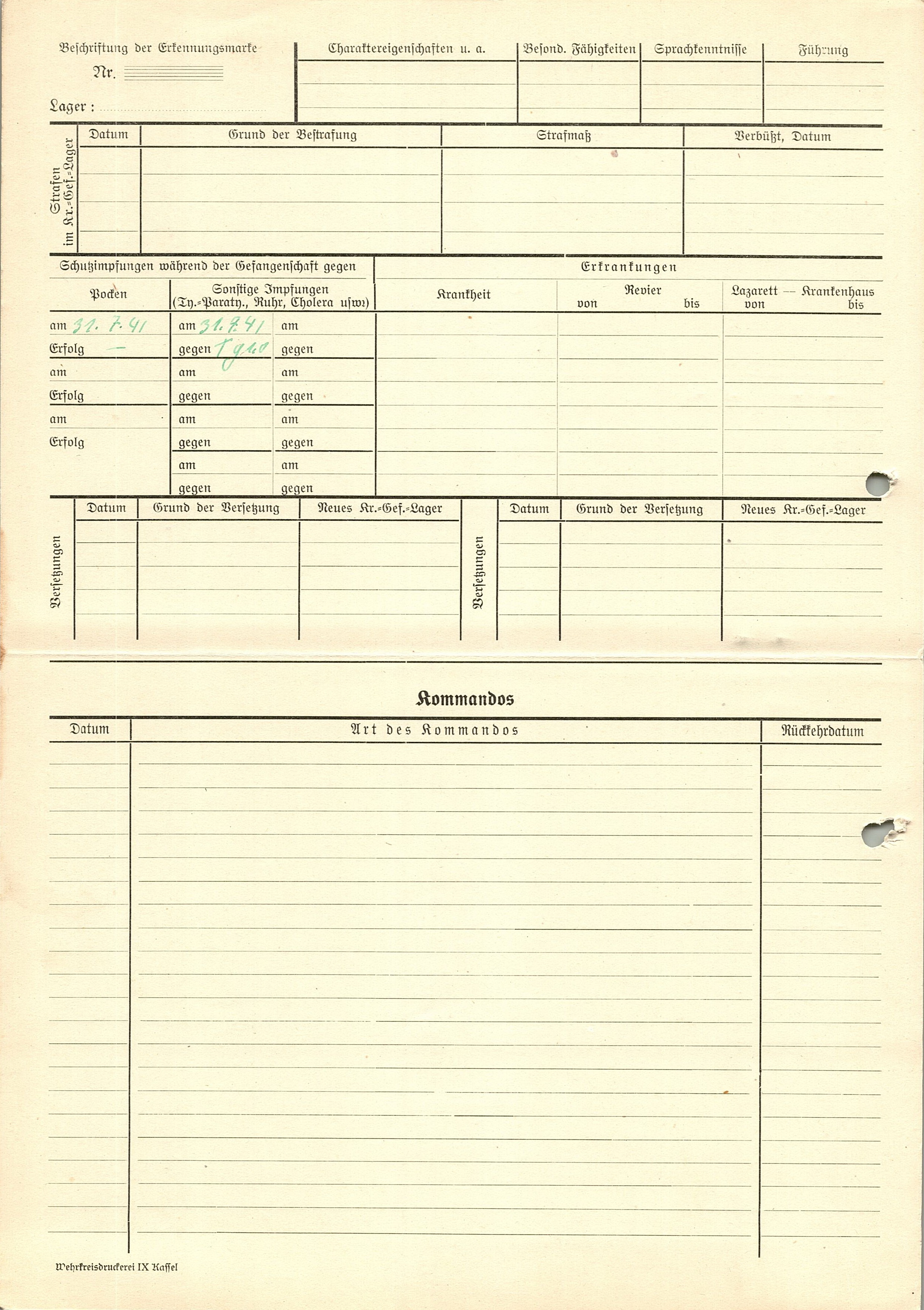 Военнопленные, трофейные карточки. Киевская обл.