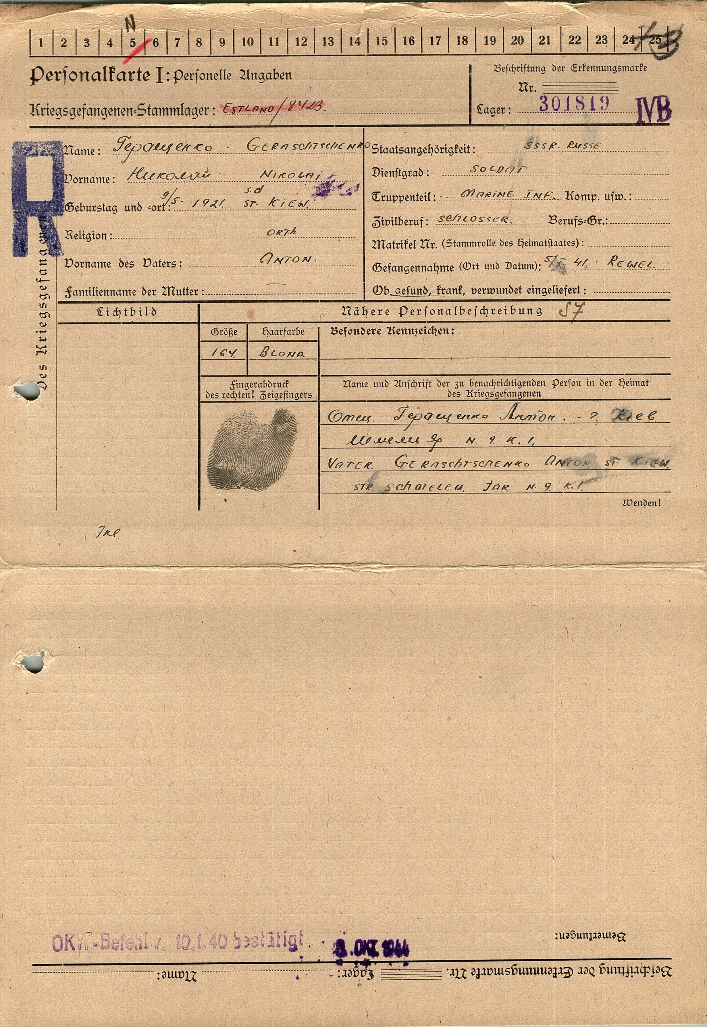 Военнопленные, трофейные карточки. Киевская обл.