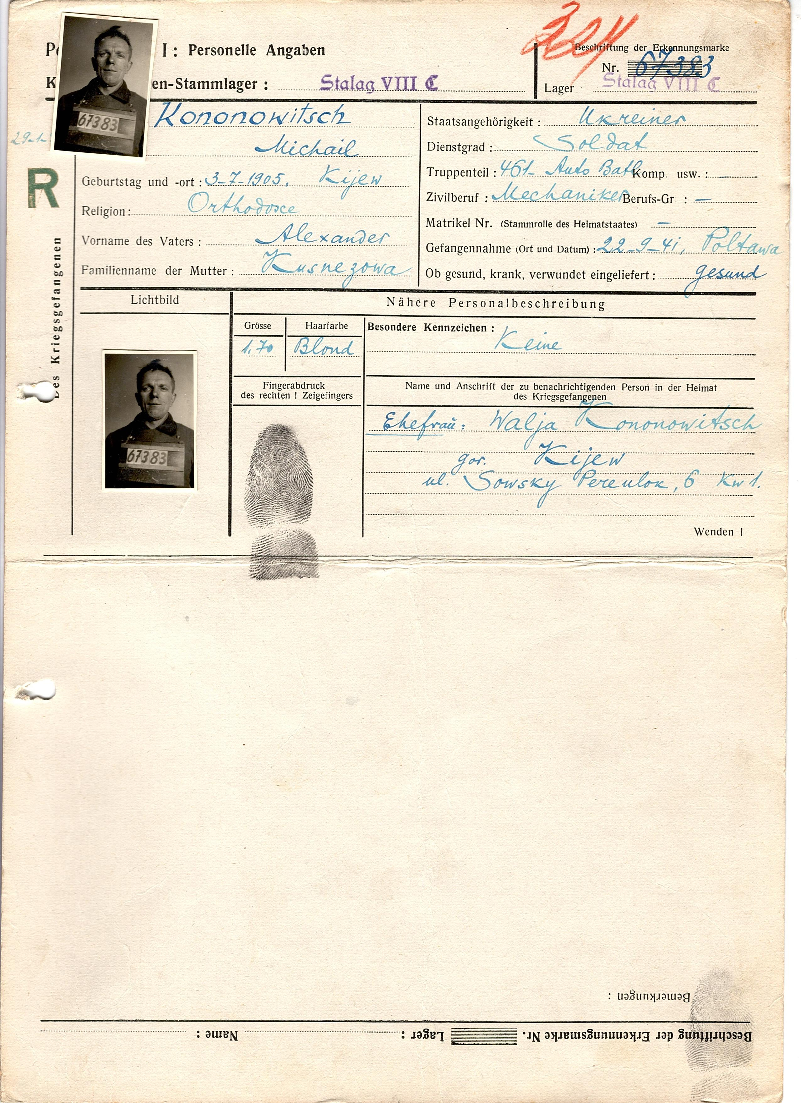 Военнопленные, трофейные карточки. Киевская обл.