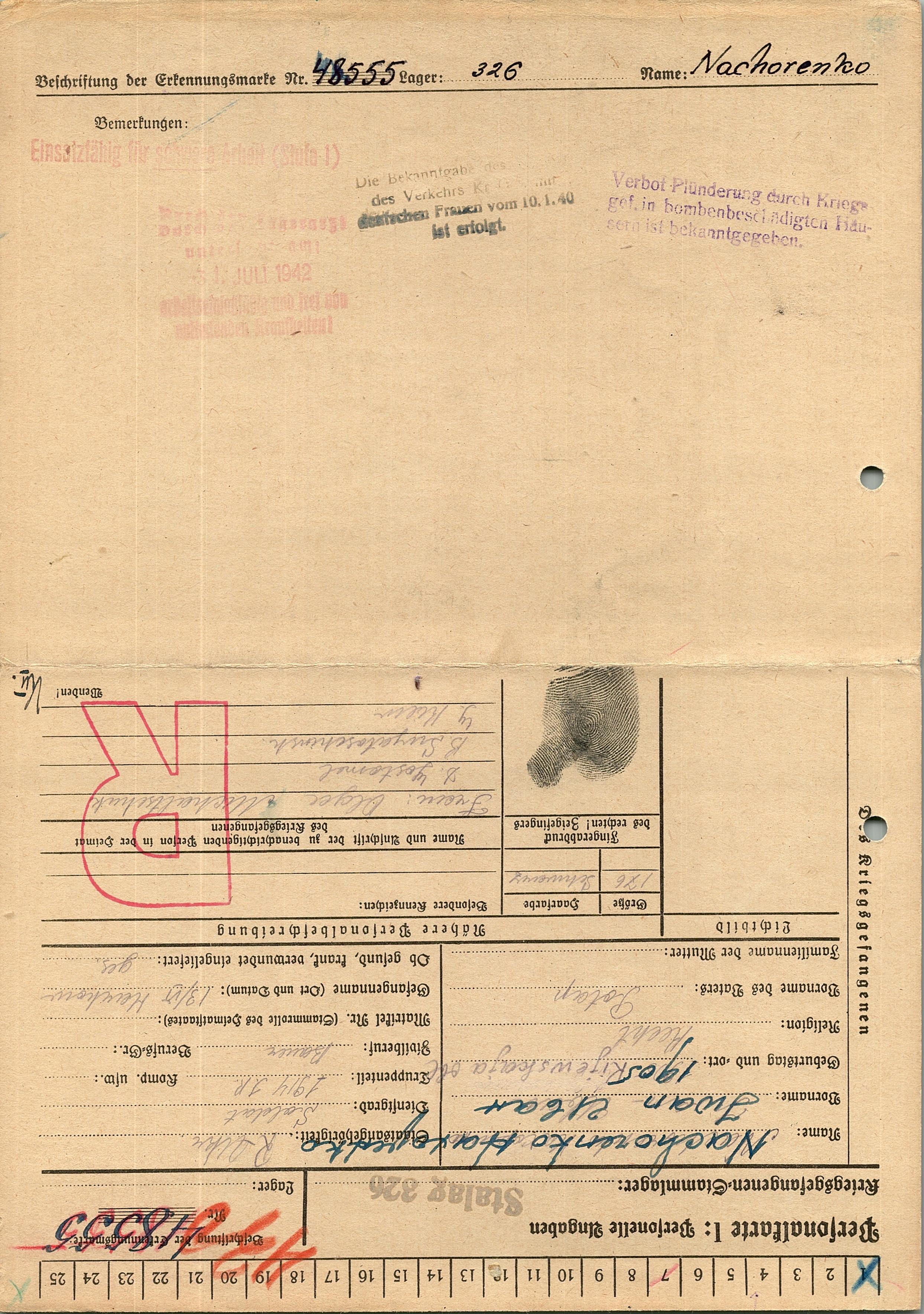 Военнопленные, трофейные карточки. Киевская обл.