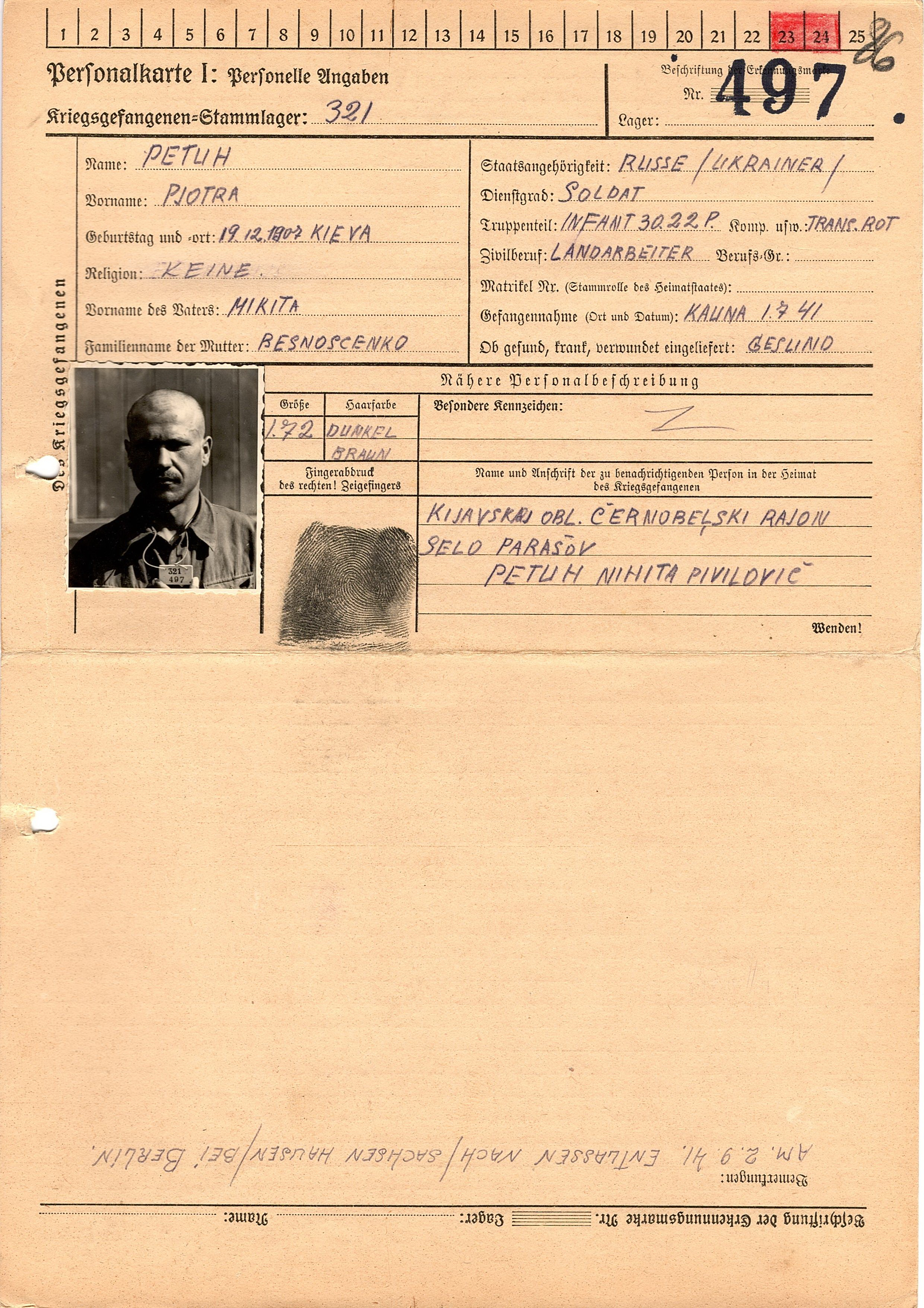 Военнопленные, трофейные карточки. Киевская обл.