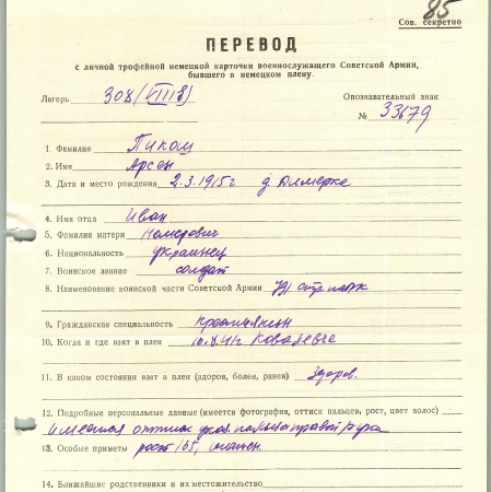 Военнопленные, трофейные карточки. Киевская обл.