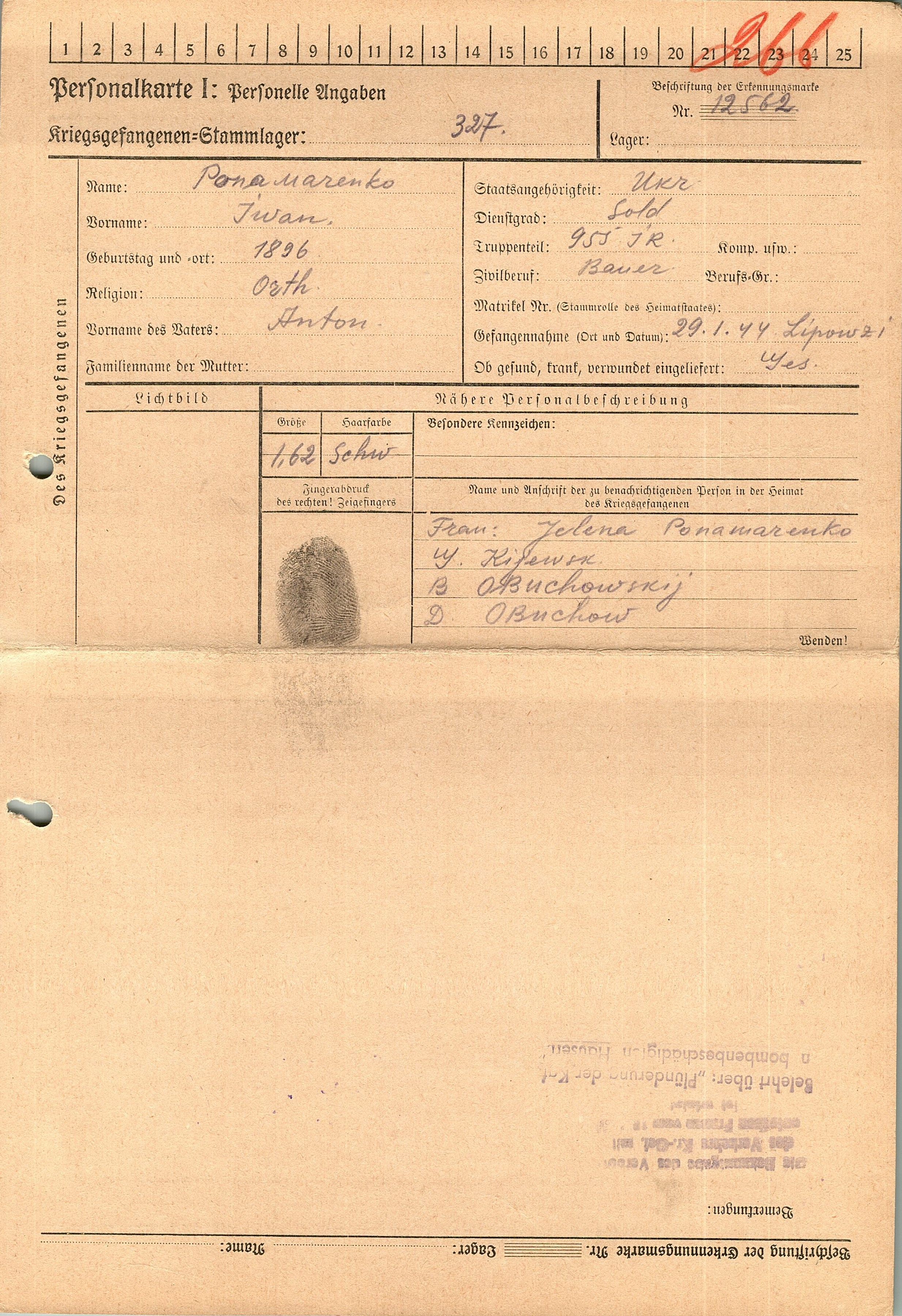 Военнопленные, трофейные карточки. Киевская обл.