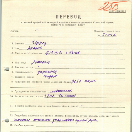 Военнопленные, трофейные карточки. Киевская обл.