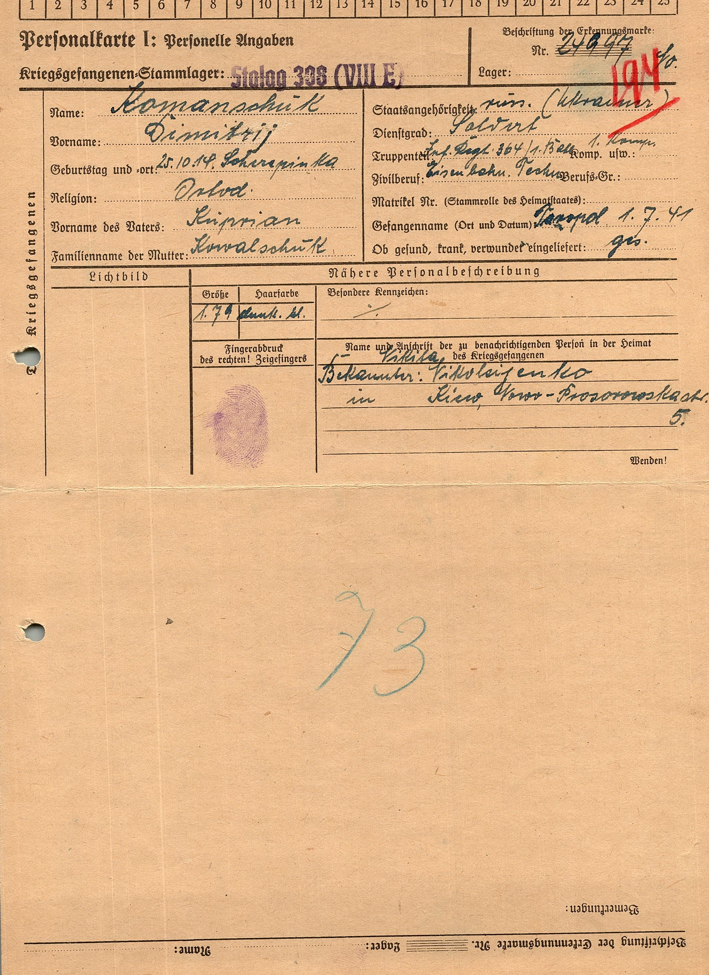 Военнопленные, трофейные карточки. Киевская обл.