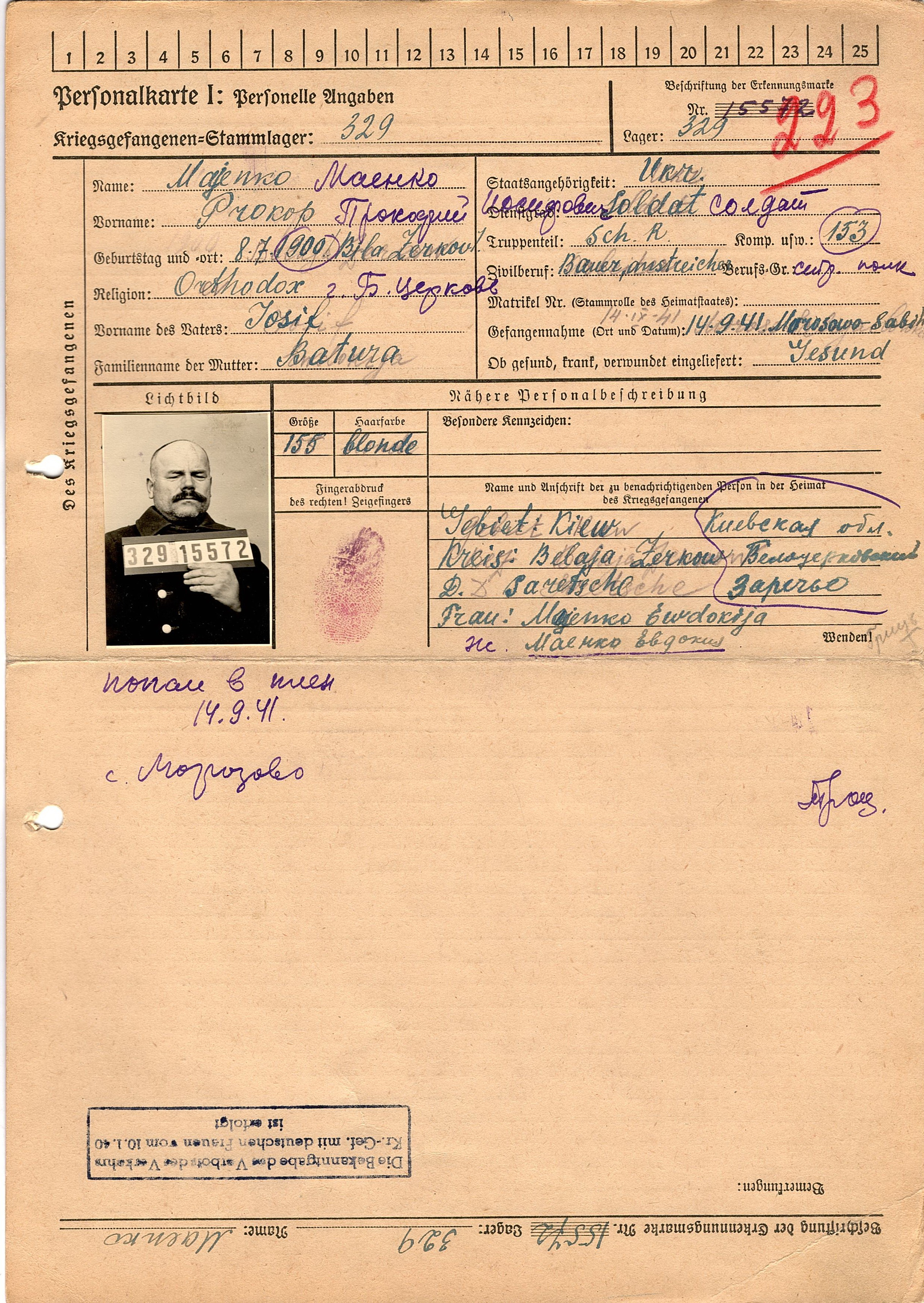 Военнопленные, трофейные карточки. Киевская обл.