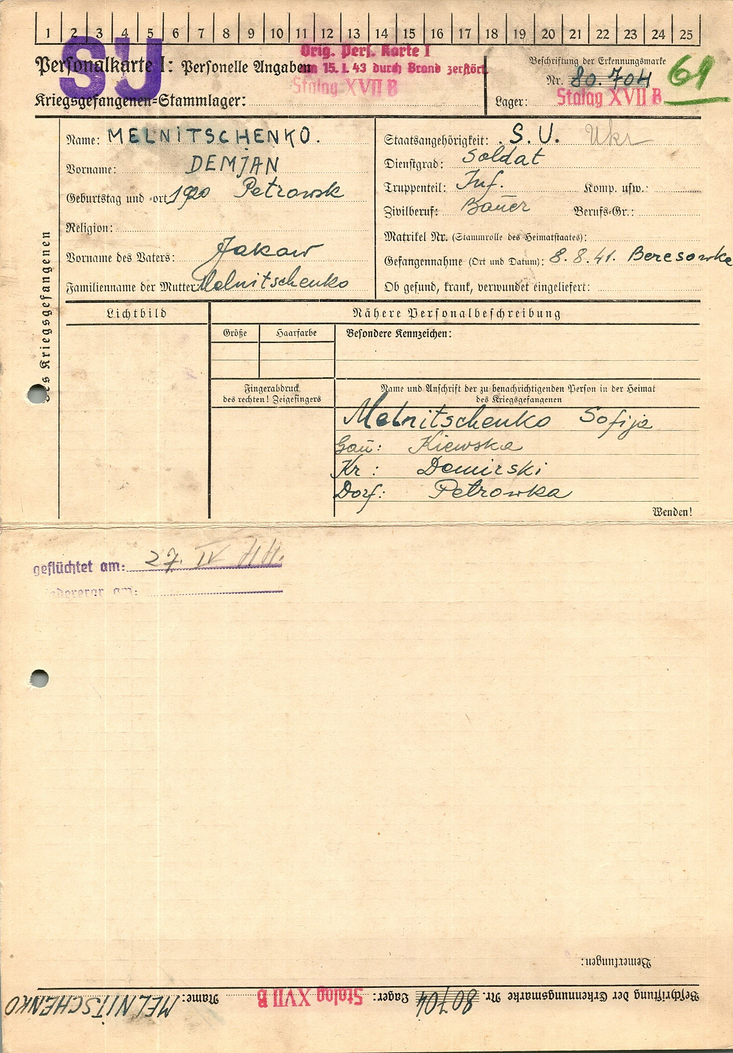 Военнопленные, трофейные карточки. Киевская обл.