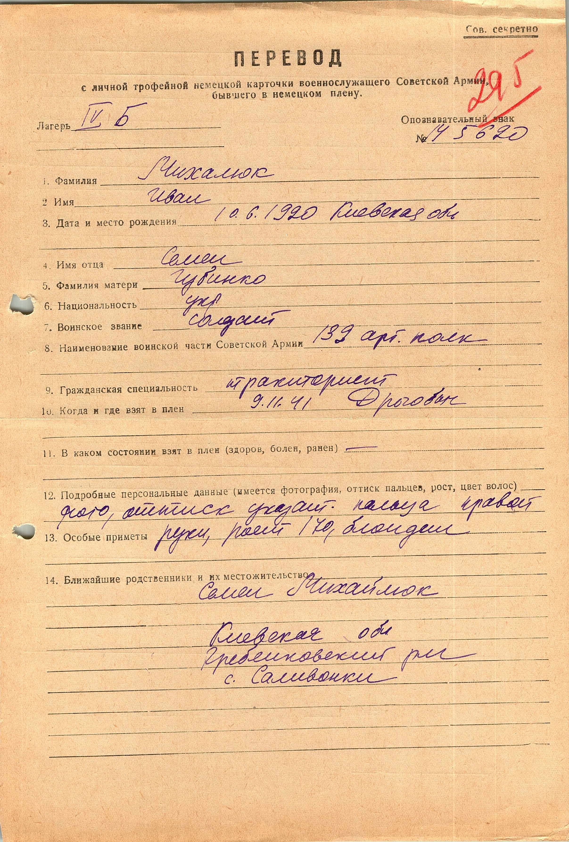 Военнопленные, трофейные карточки. Киевская обл.