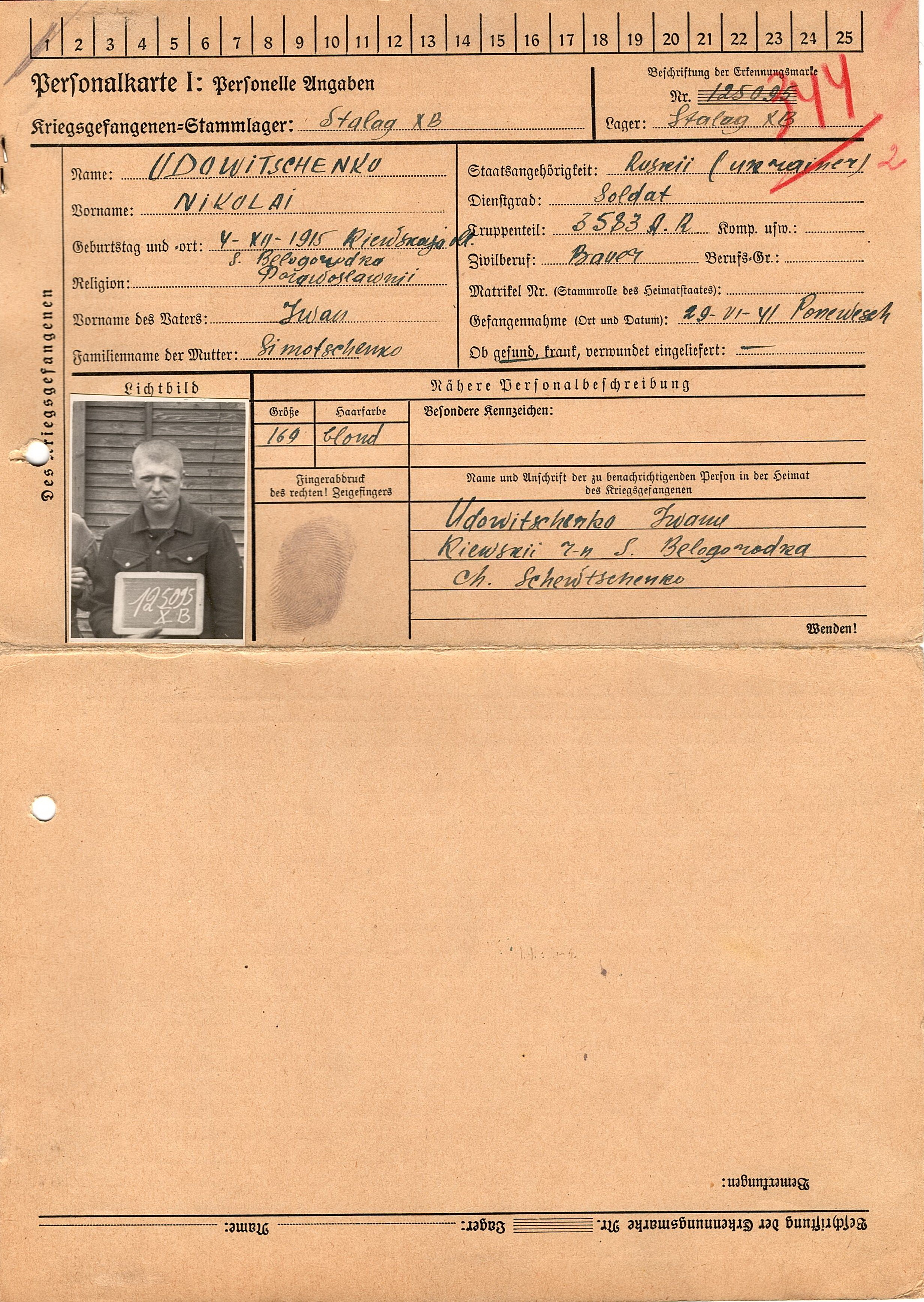 Военнопленные, трофейные карточки. Киевская обл.
