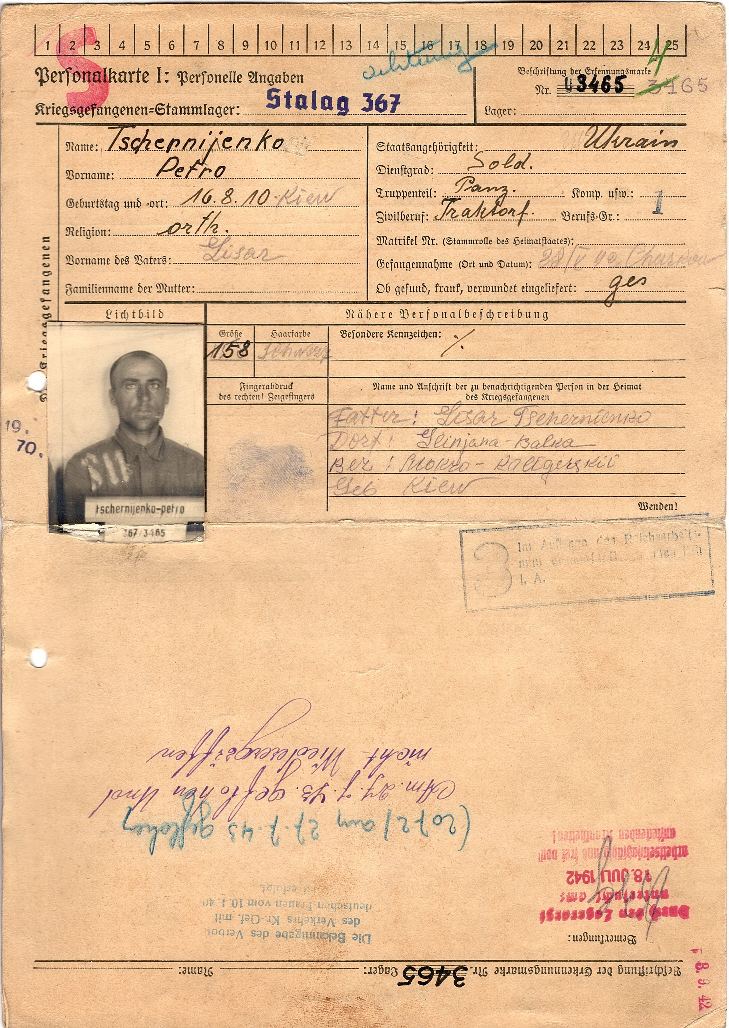 Военнопленные, трофейные карточки. Киевская обл.