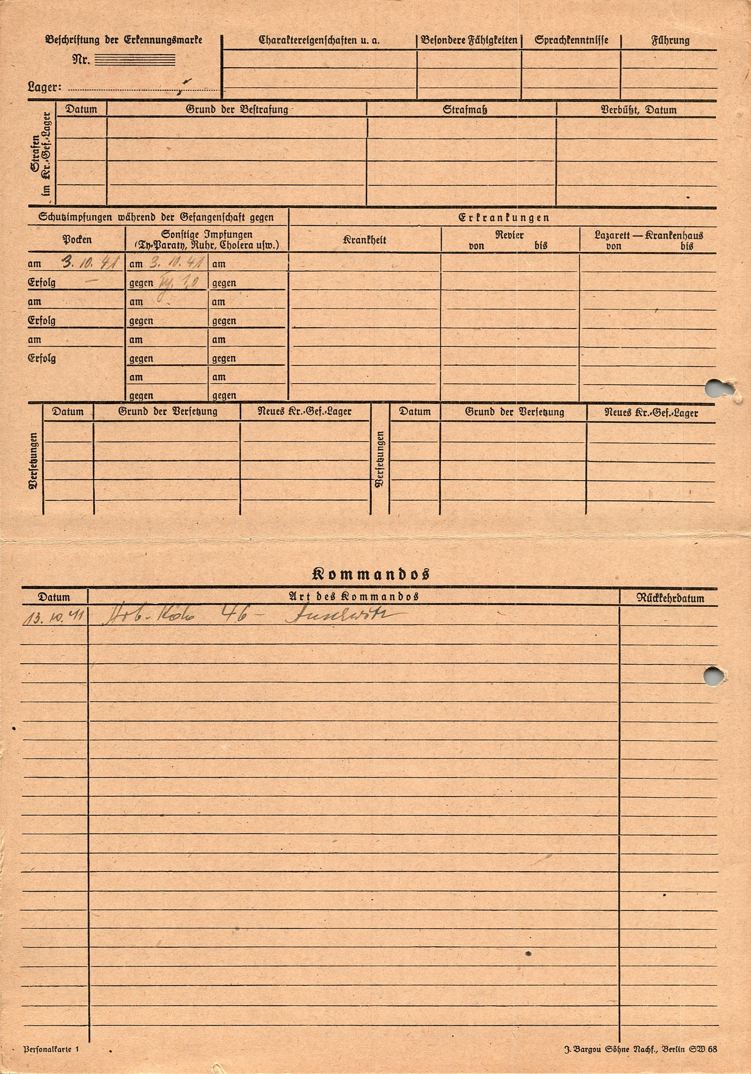Военнопленные, трофейные карточки. Киевская обл.