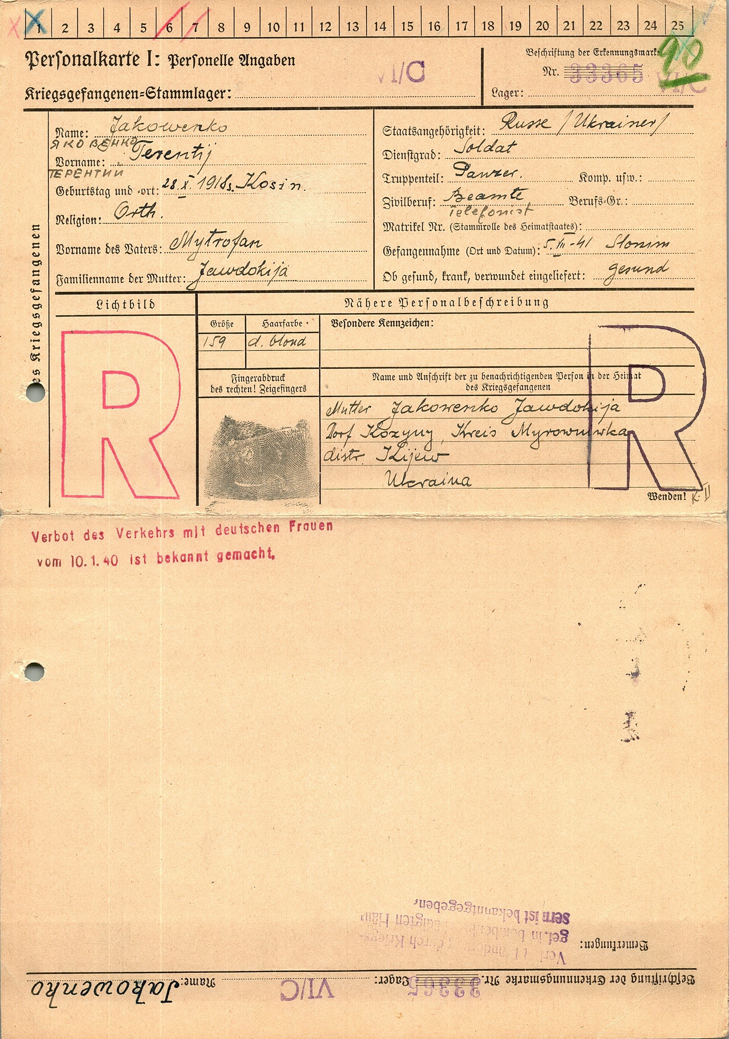 Военнопленные, трофейные карточки. Киевская обл.