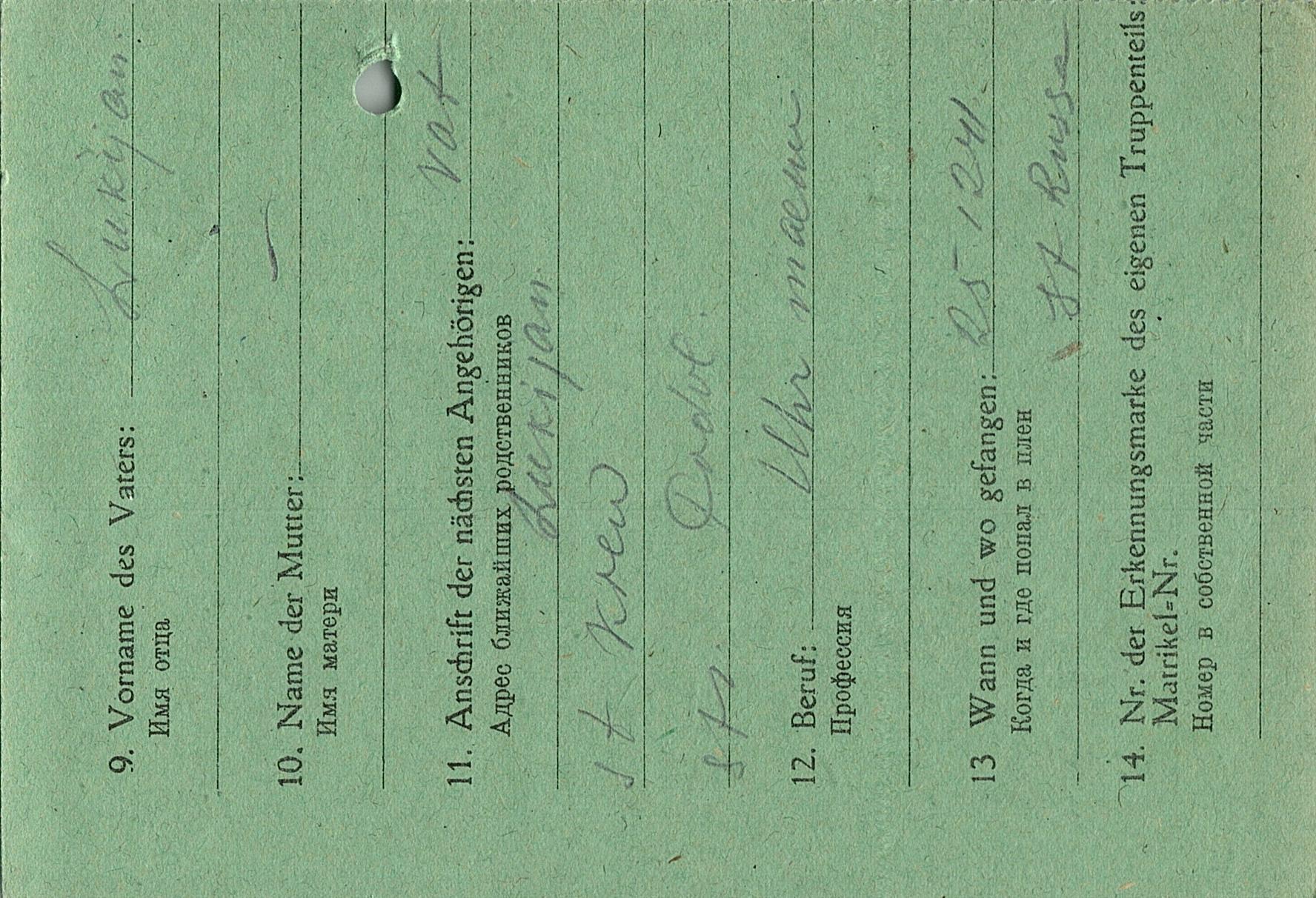 Военнопленные, трофейные карточки. Киевская обл.