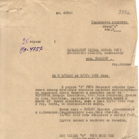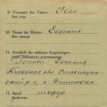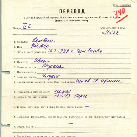 Военнопленные, трофейные карточки. Киевская обл.