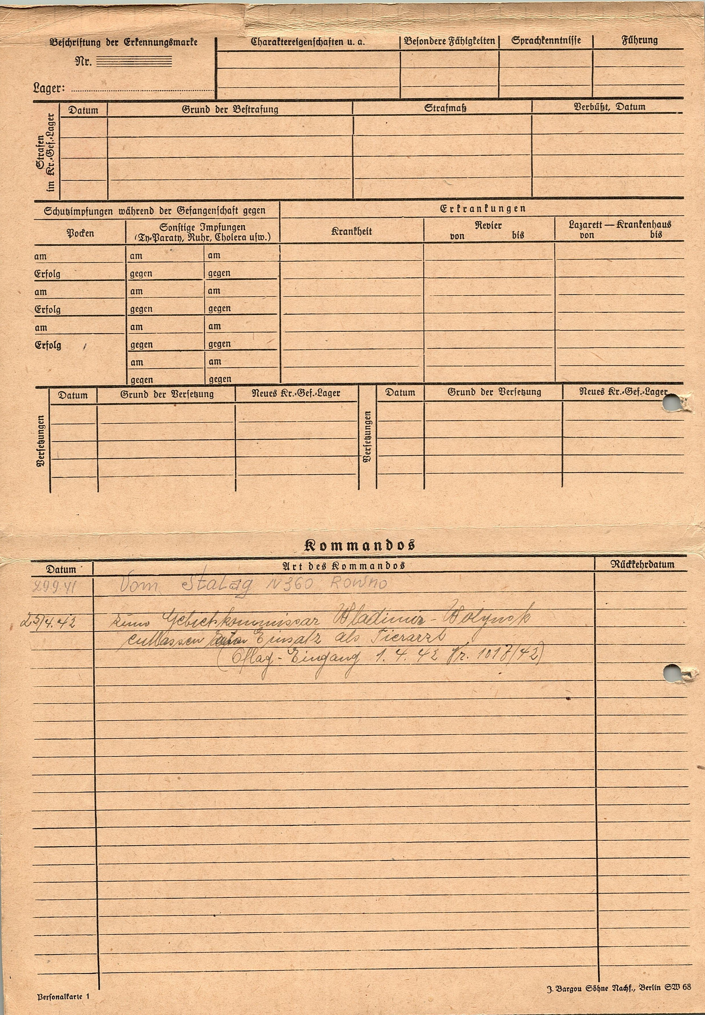 Военнопленные, трофейные карточки. Киевская обл.