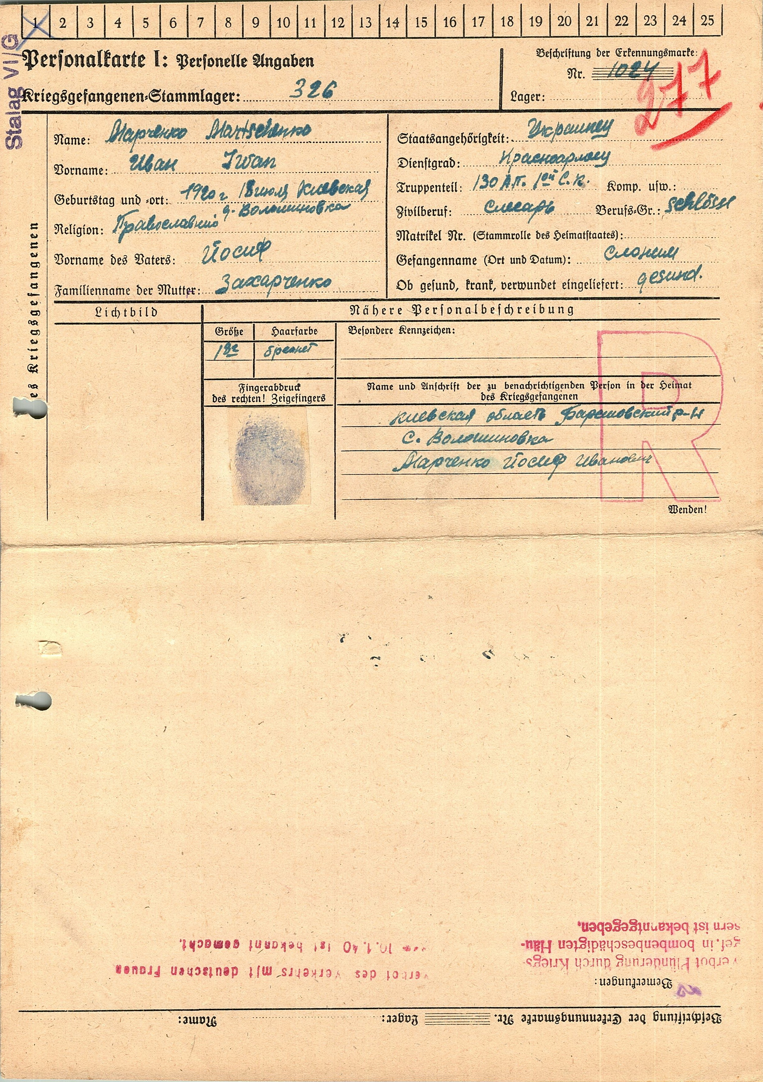 Военнопленные, трофейные карточки. Киевская обл.