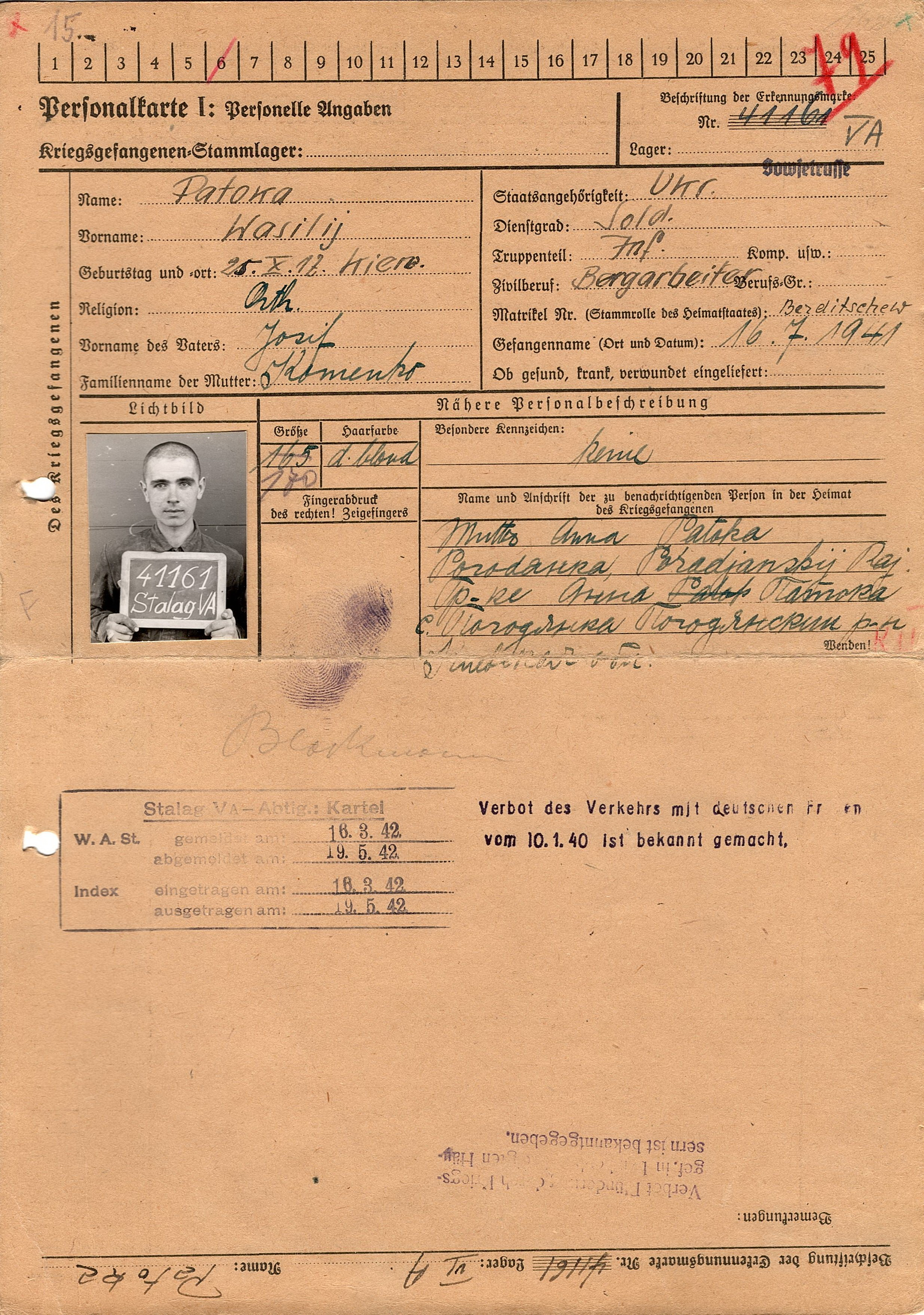 Военнопленные, трофейные карточки. Киевская обл.