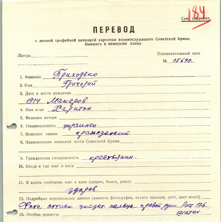 Военнопленные, трофейные карточки. Киевская обл.