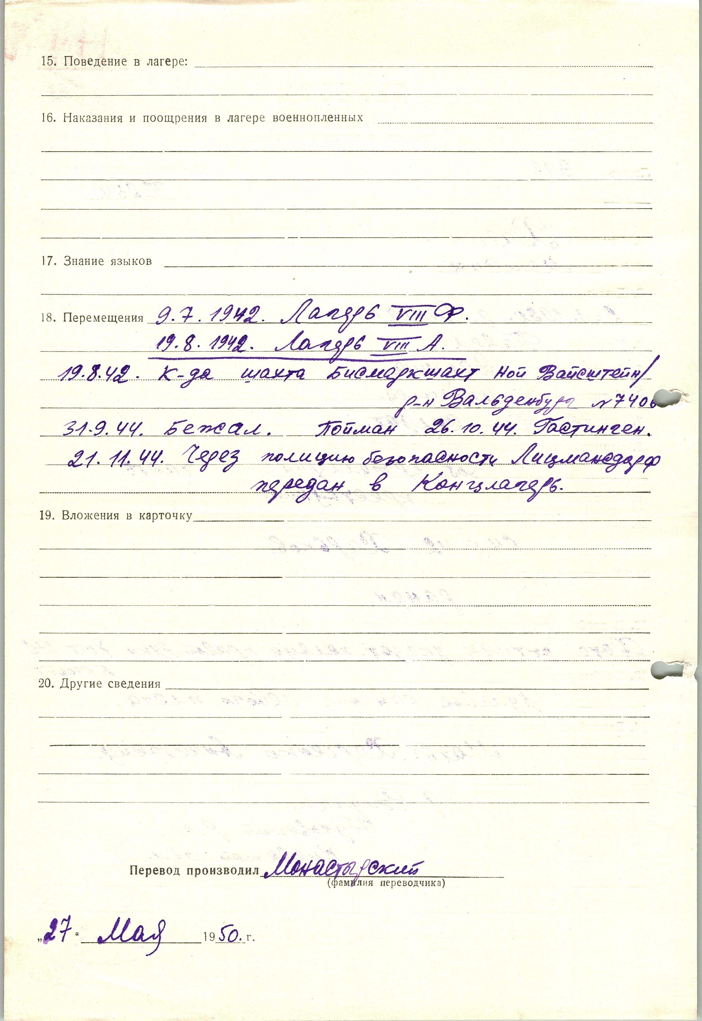 Военнопленные, трофейные карточки. Киевская обл.