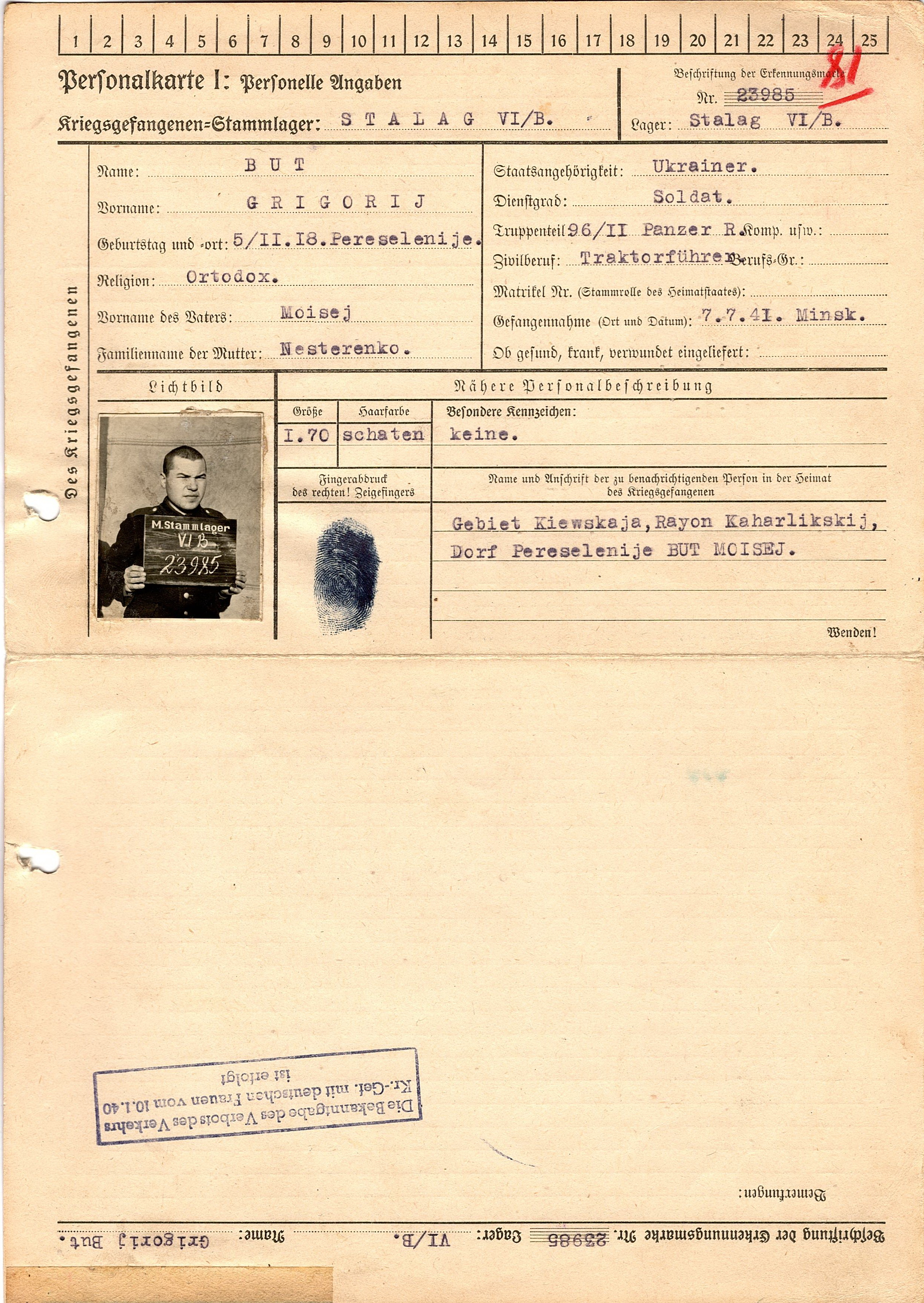 Военнопленные, трофейные карточки. Киевская обл.