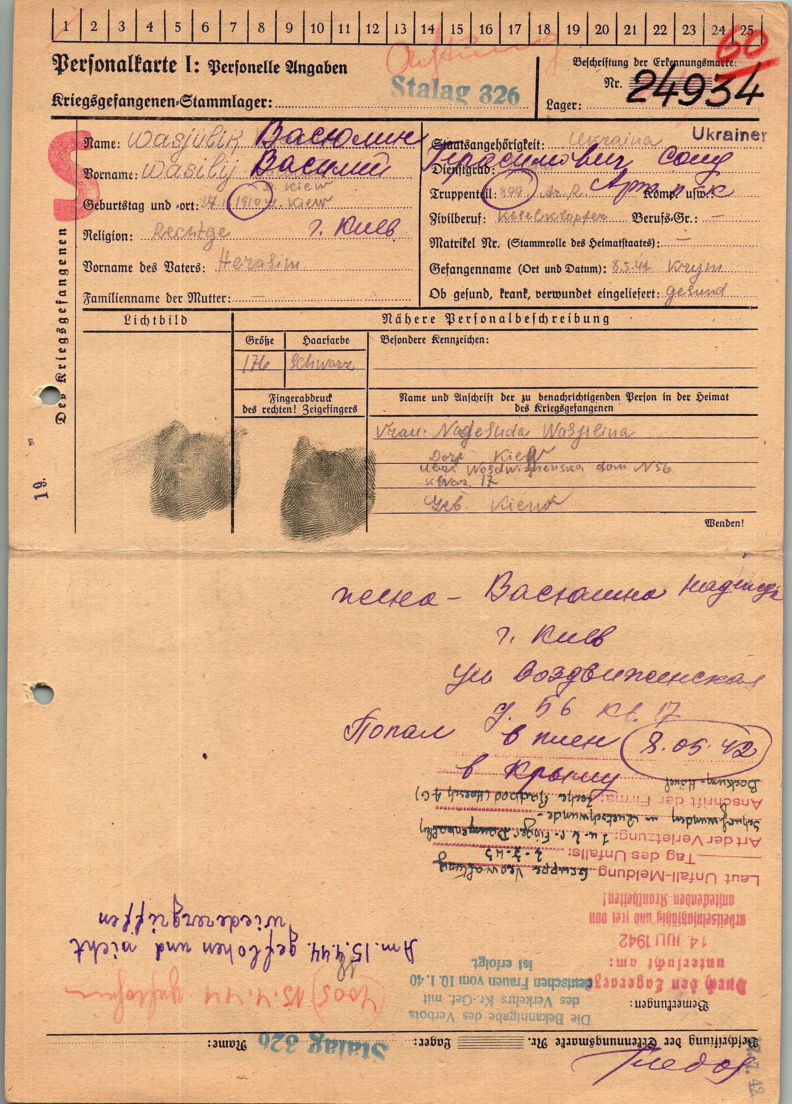 Военнопленные, трофейные карточки. Киевская обл.