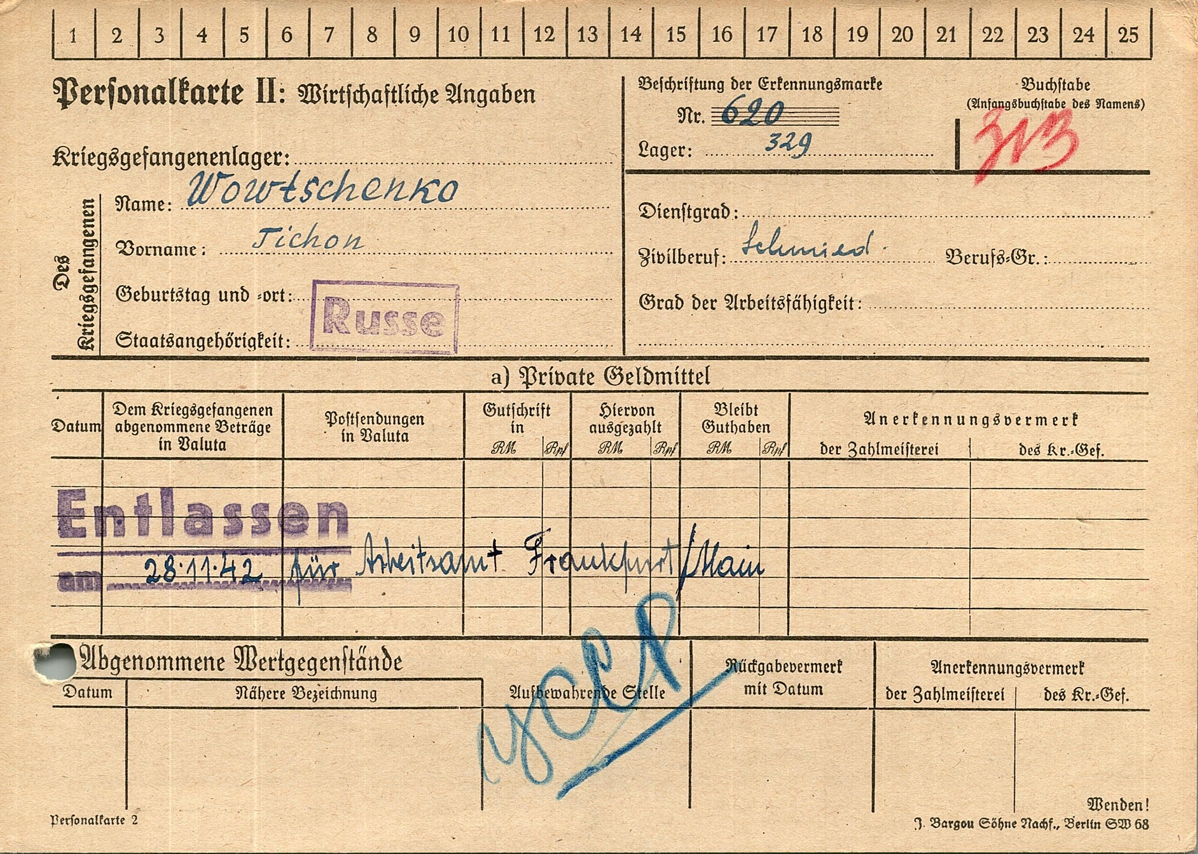 Военнопленные, трофейные карточки. Киевская обл.