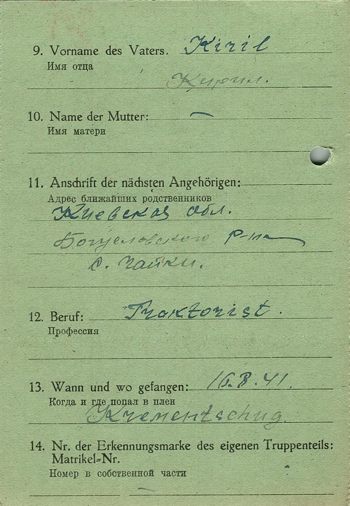 Военнопленные, трофейные карточки. Киевская обл.