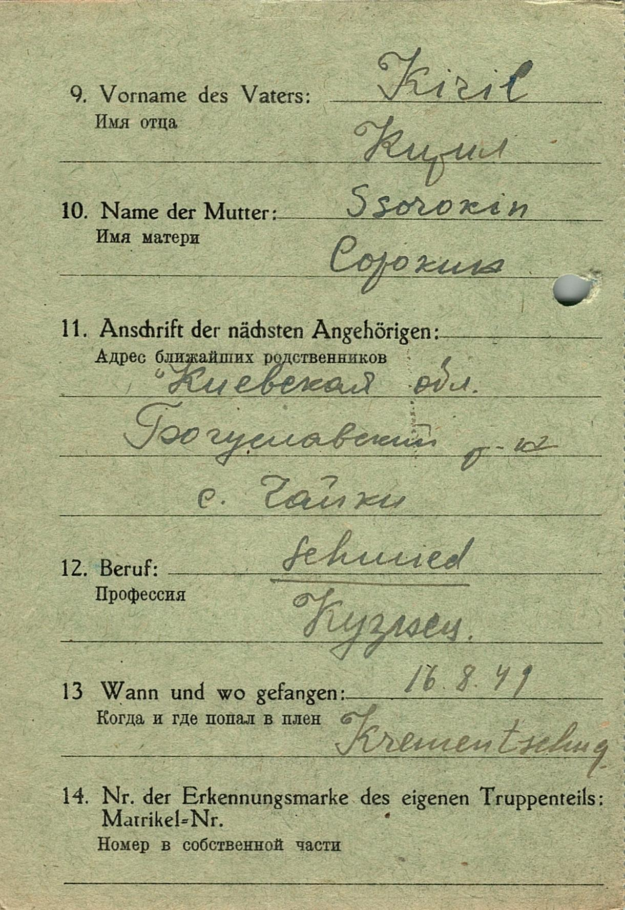 Военнопленные, трофейные карточки. Киевская обл.