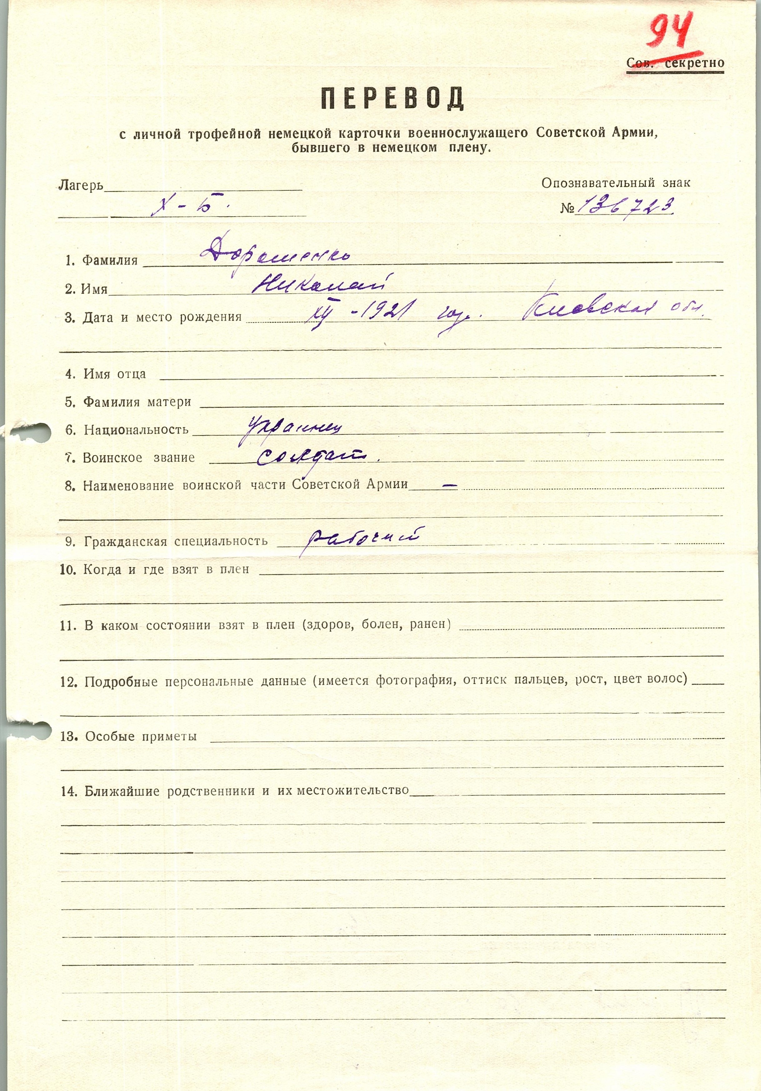 Военнопленные, трофейные карточки. Киевская обл.