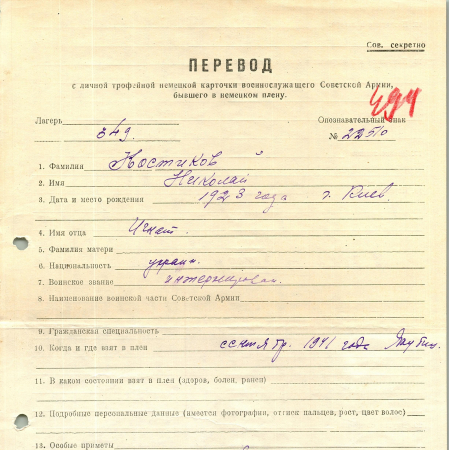 Военнопленные, трофейные карточки. Киевская обл.