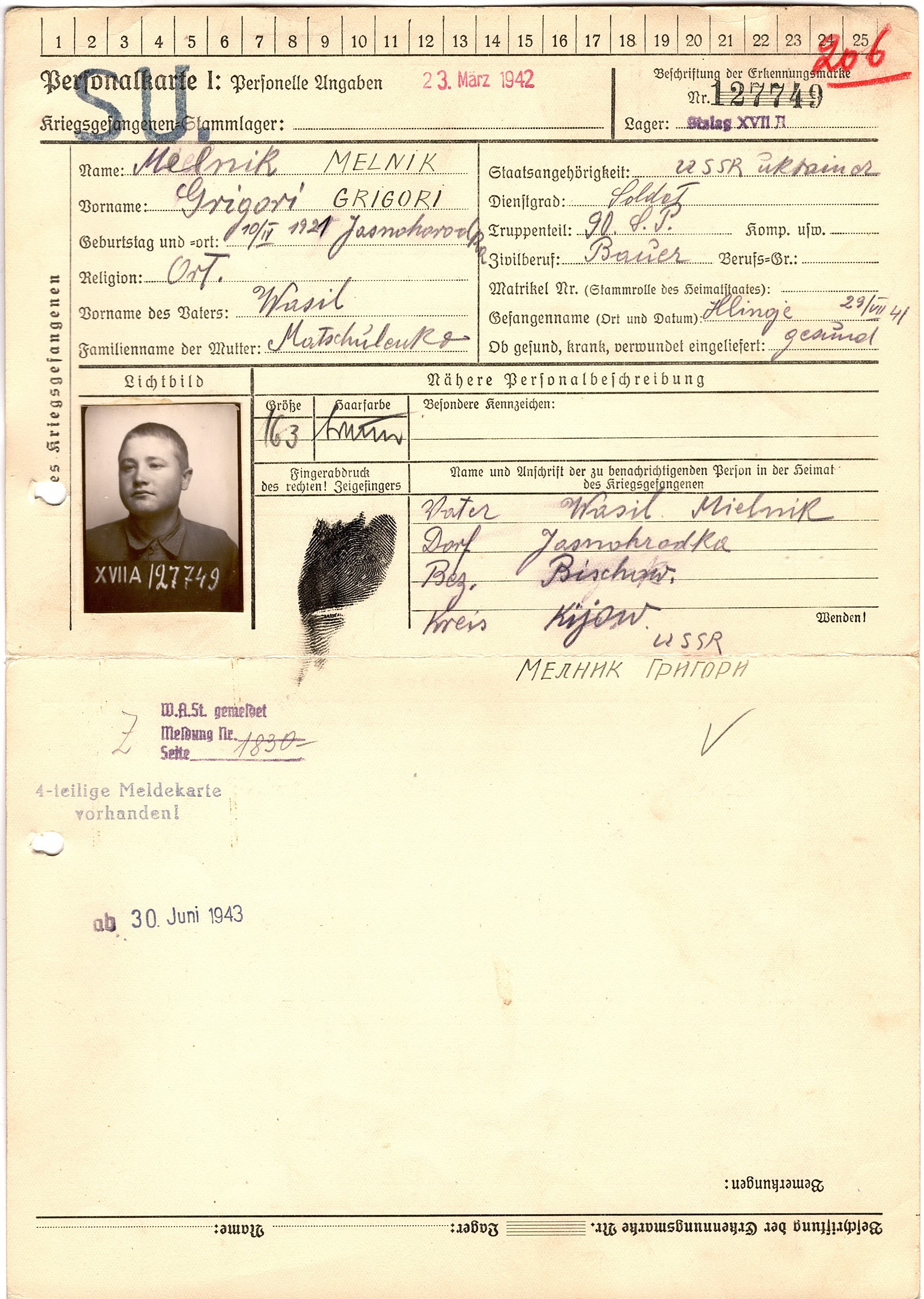 Военнопленные, трофейные карточки. Киевская обл.